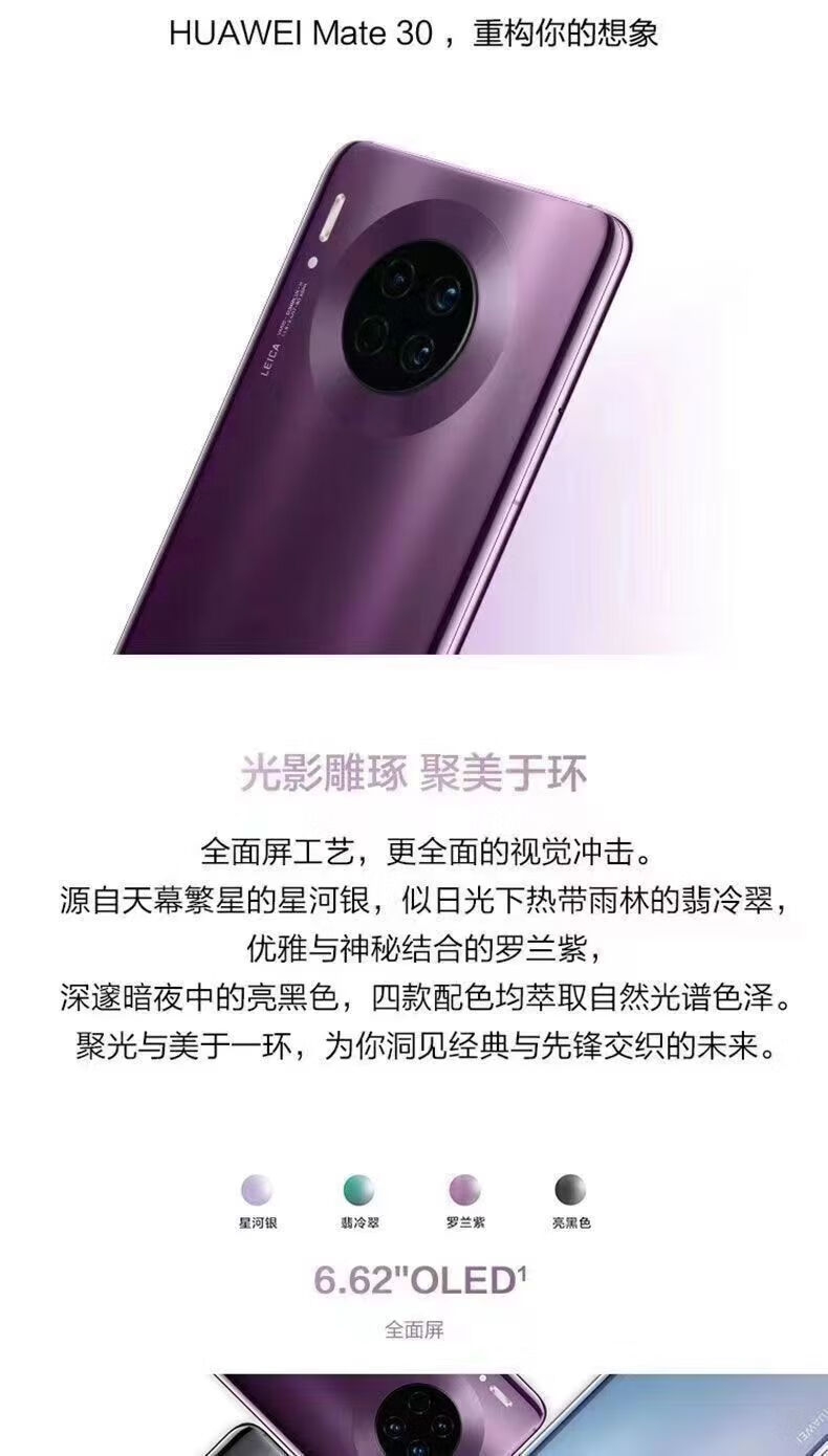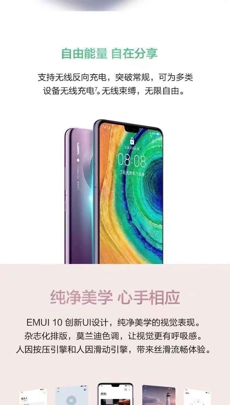 华为(HUAWEI)手机Huawei/华为 MATE 30麒麟990高配学生游戏5G鸿蒙mate30pro 罗兰紫 6GB+128GB x 4G全网通 x 套餐一1