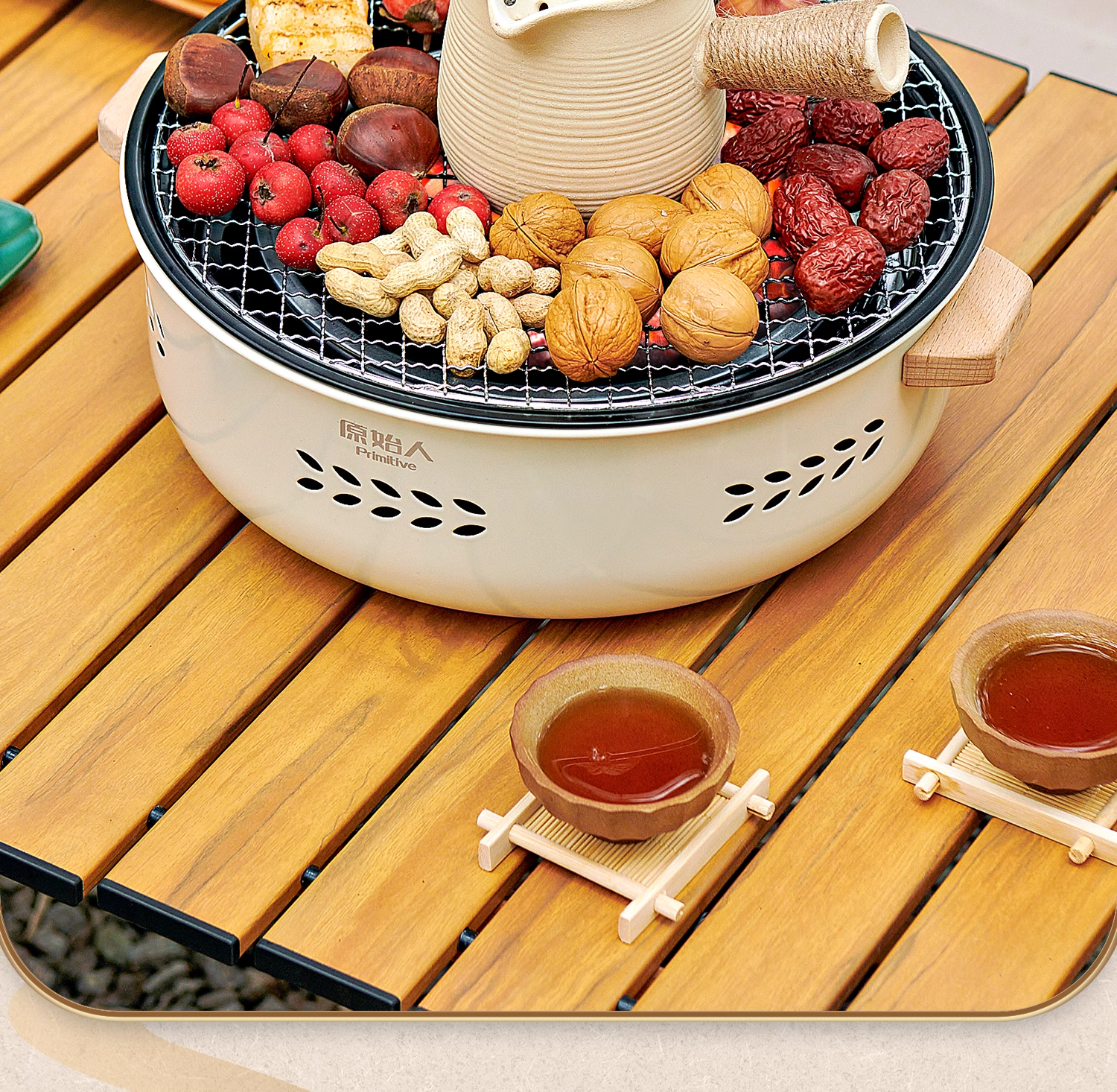 东西收到立马用起来,本来担心烤炉发烫会烫坏桌子,垫子都买好了,结果担心完全多余了。这个在家围炉煮茶弄个小烤串还是很方便的,喜欢喜欢。简直太爱原始人了,材质很棒 不愧是专业做户外的,买了很多他家的东西从没失望