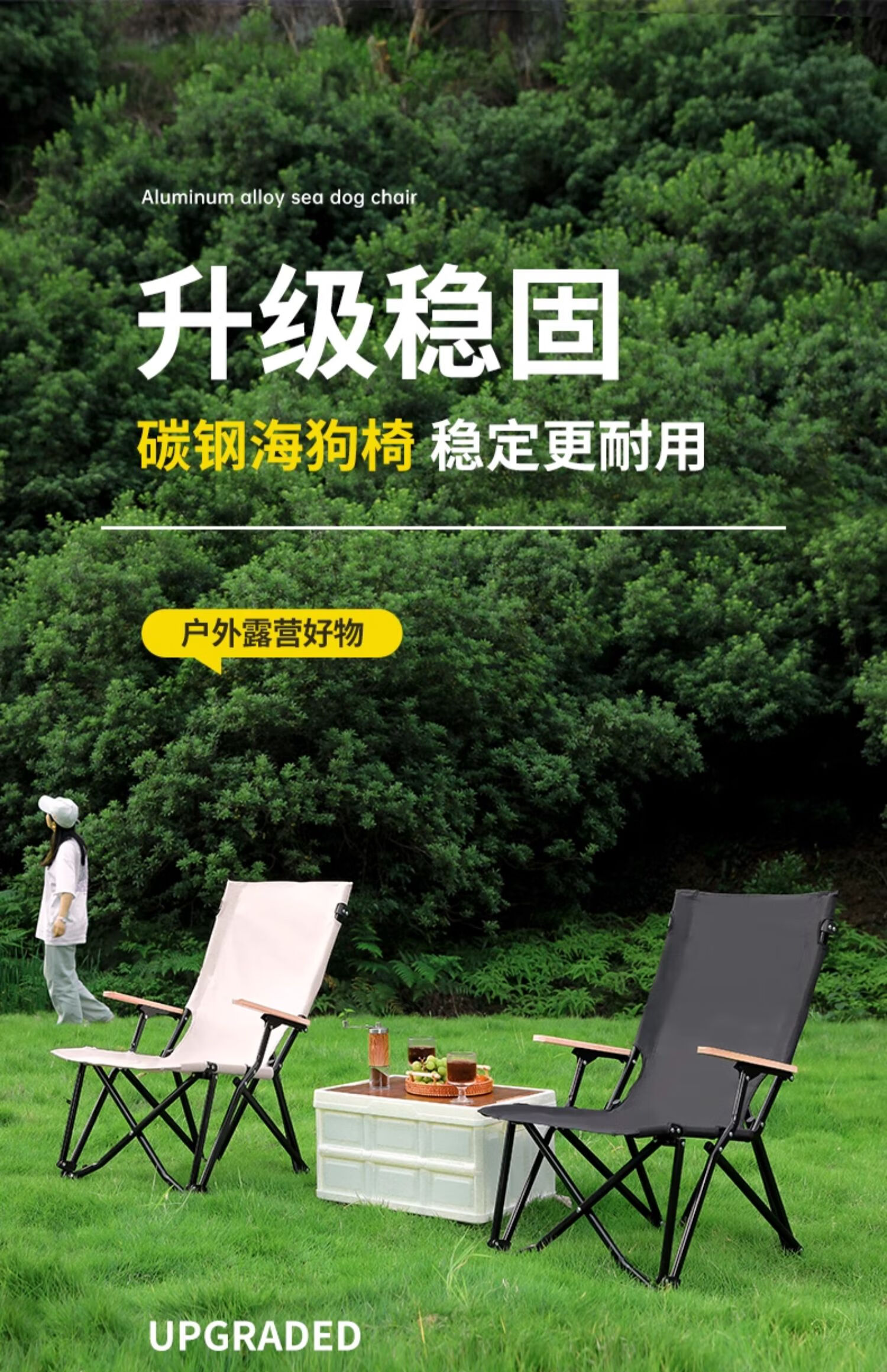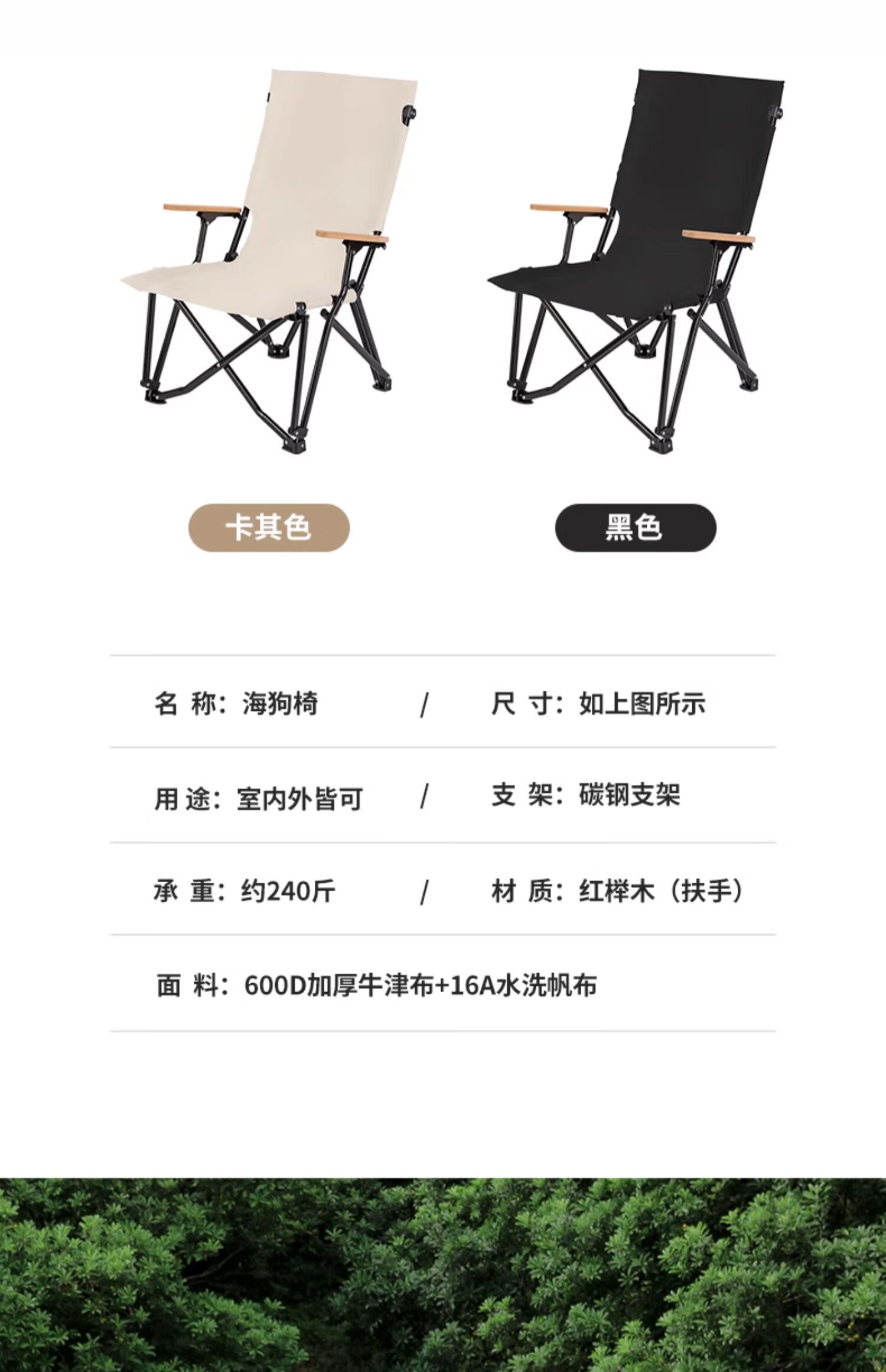 云伴户外折叠椅露营椅子躺椅便携式野餐海狗椅超轻钓鱼沙滩椅懒人午休 大号海狗椅【黑色】