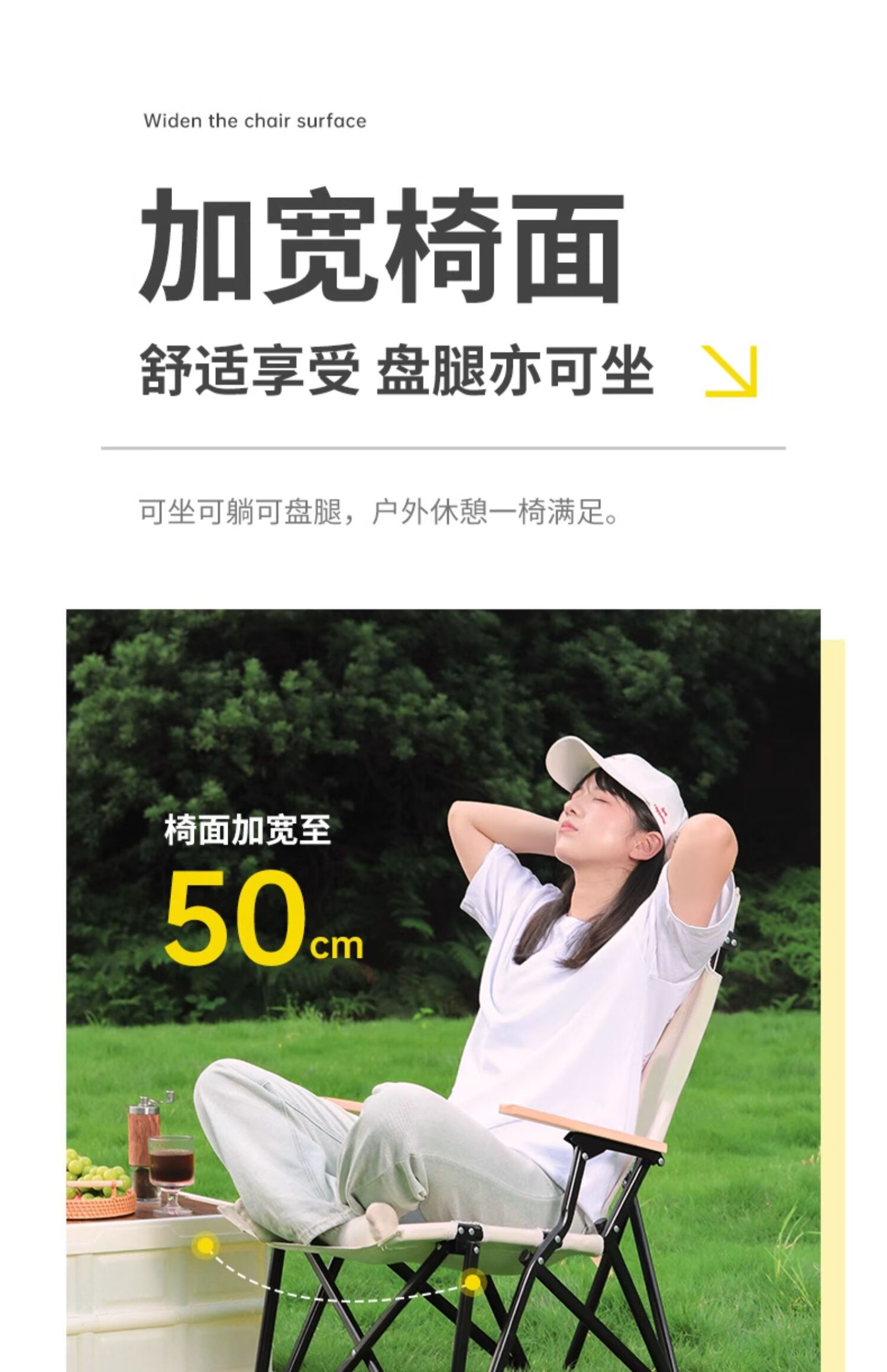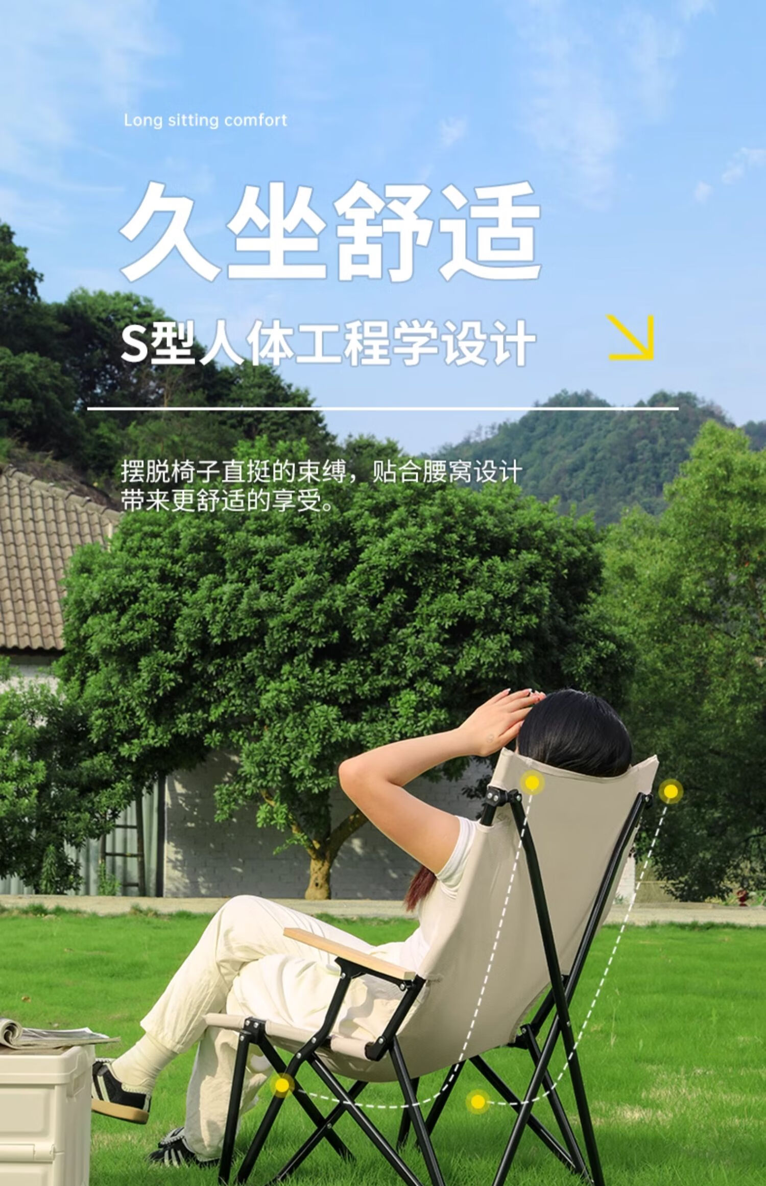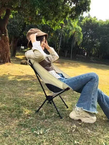 原始人躺椅户外折叠椅露营椅子便携式月亮椅办公室午休沙滩椅神器 加高靠背款卡其