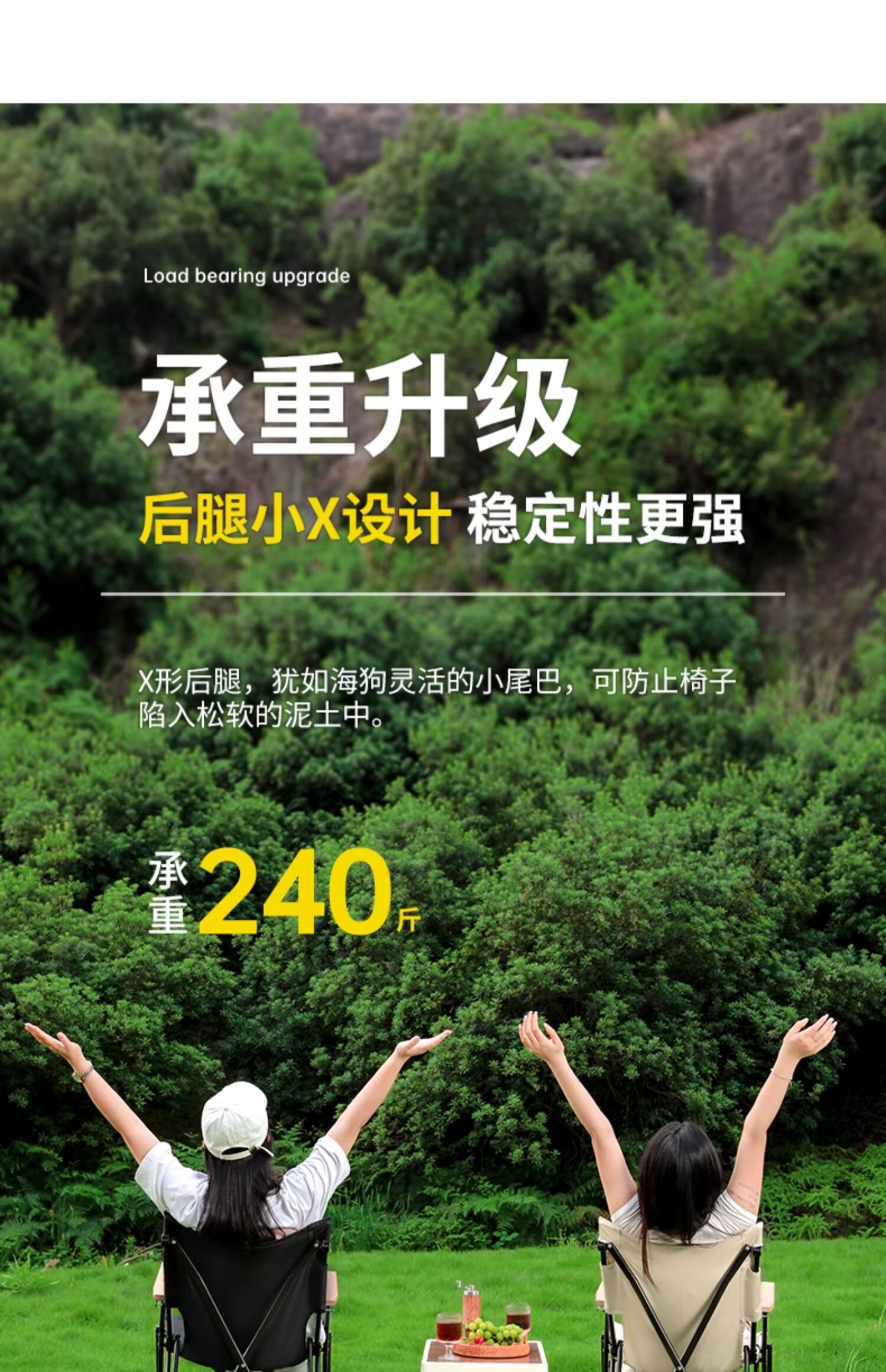 GIUMA归麦铝合金海狗椅聚拢收纳户外露营椅折叠便携式钓鱼导演椅带靠背 卡其色