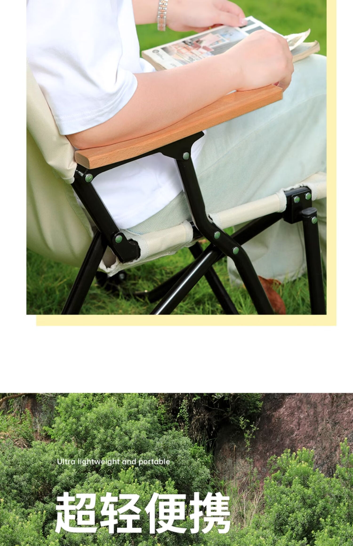 暴走怪兽户外折叠椅子便携式克米特椅收纳聚拢钓鱼凳露营椅野餐椅 【冬竹青】升级聚拢版+榉木扶手