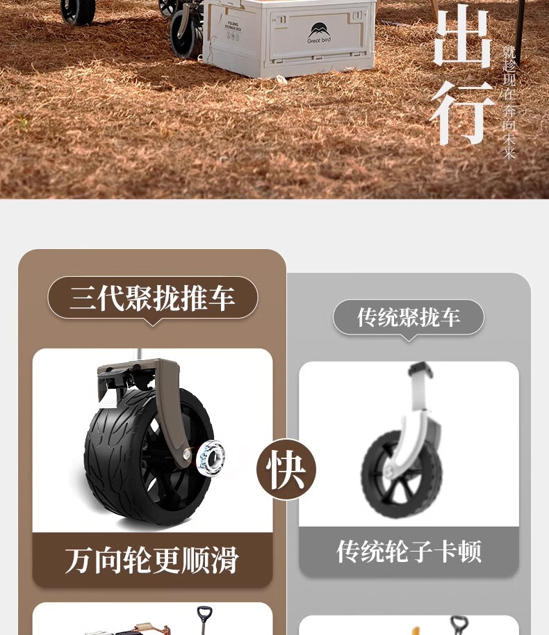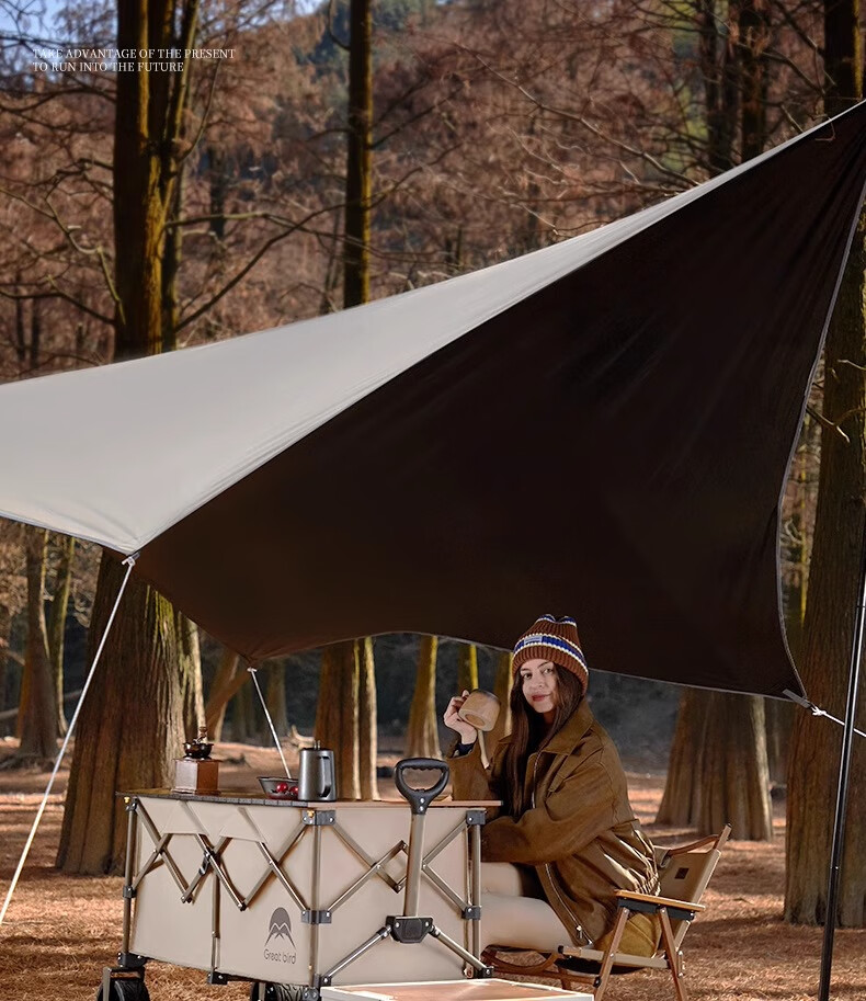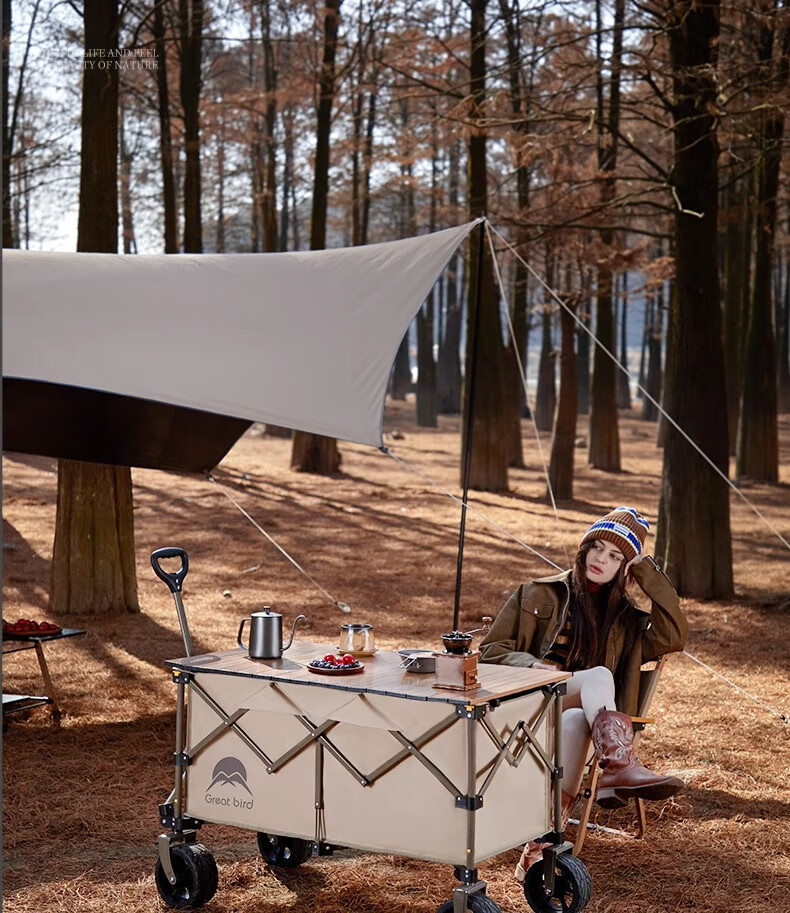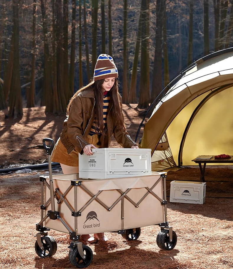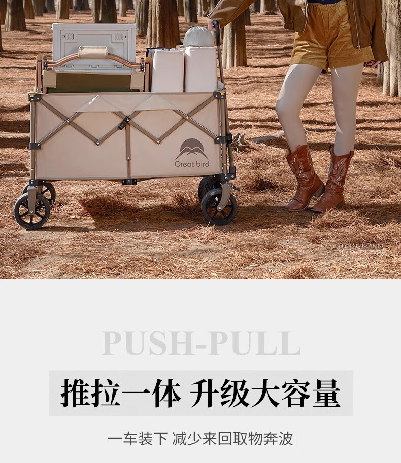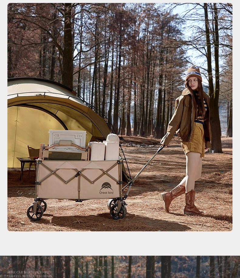 出色鸟Greatbird户外大号露营车野餐手拉旅行聚拢推车儿童可躺折叠野营地装备拖车 300L【越野轮+聚拢收纳】榛果棕