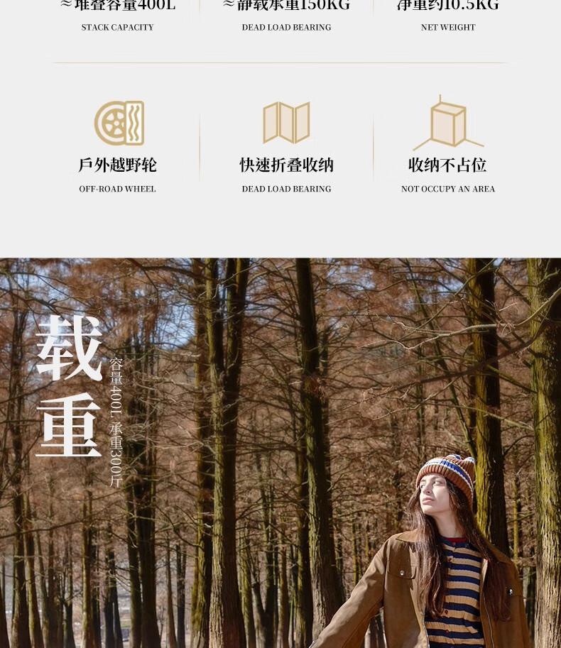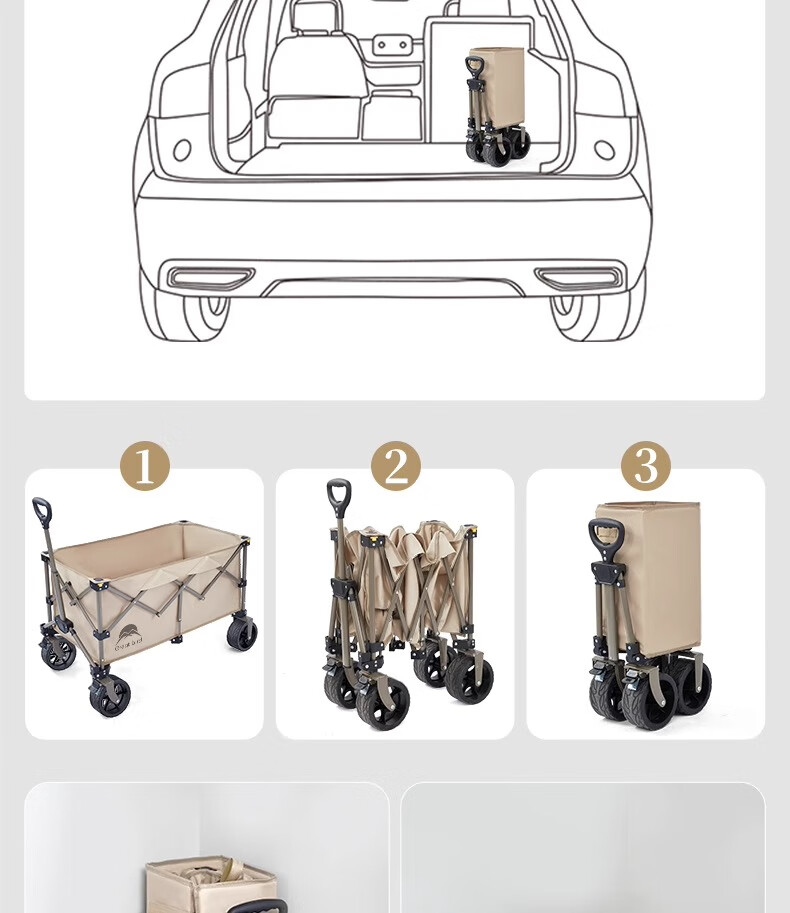 CAMEL玉兔营地车户外露营车买菜溜娃遛狗野餐大容量手推车聚拢型拉车