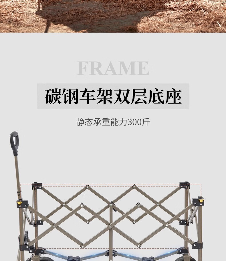 牧高笛云际折叠露营推车聚拢款户外大容量带刹车带娃可躺手推车拉车 细沙黄 150L 【聚拢宽轮刹车】