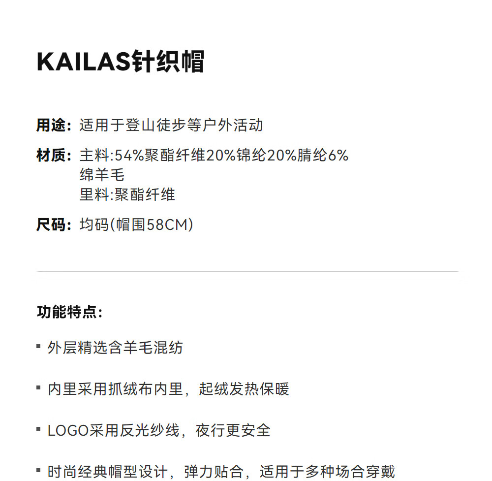 凯乐石(KAILAS)针织帽抓绒保暖户外登山徒步针织帽 沉暮蓝 均码