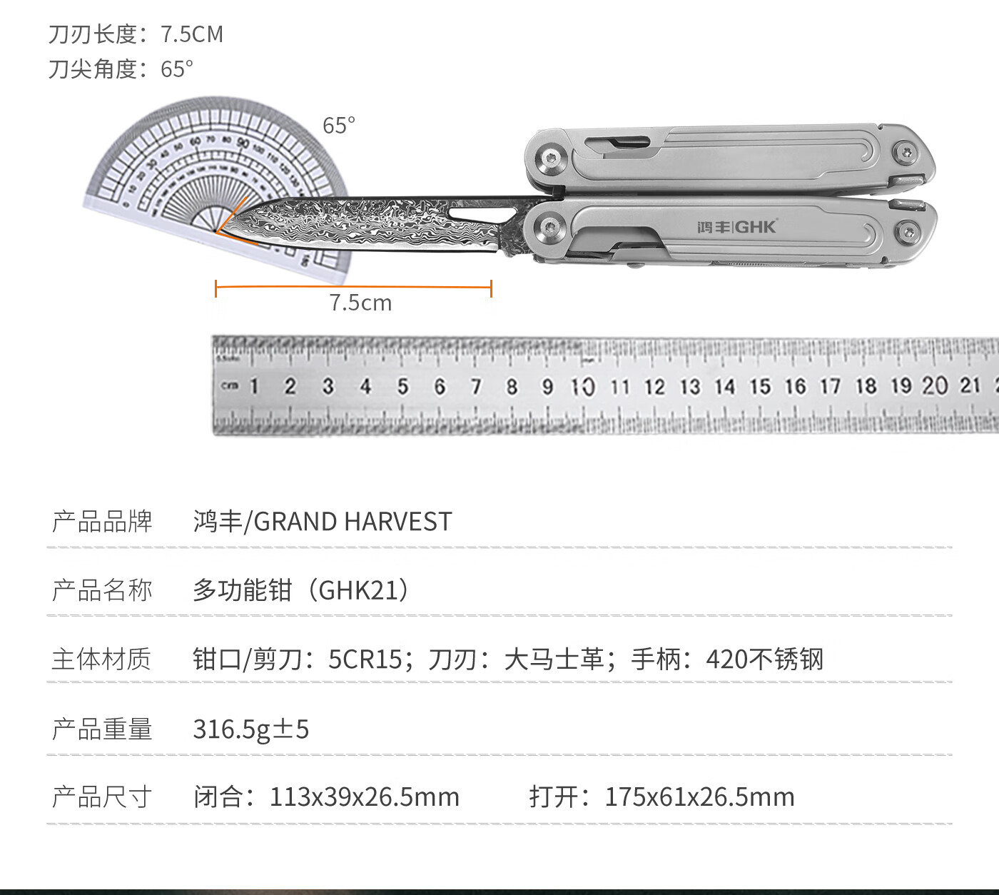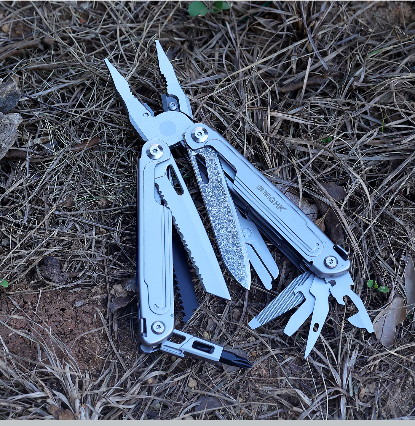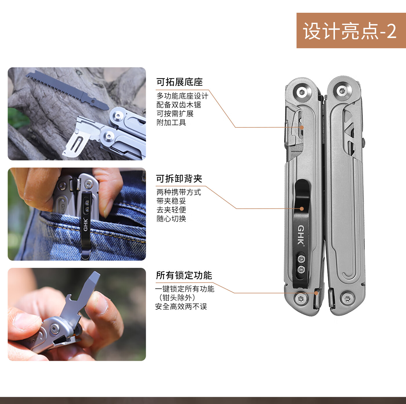 鸿丰应急救援多功能工具折叠钳车载防身小刀户外露营装备组合工具剪刀 GHK20石洗版