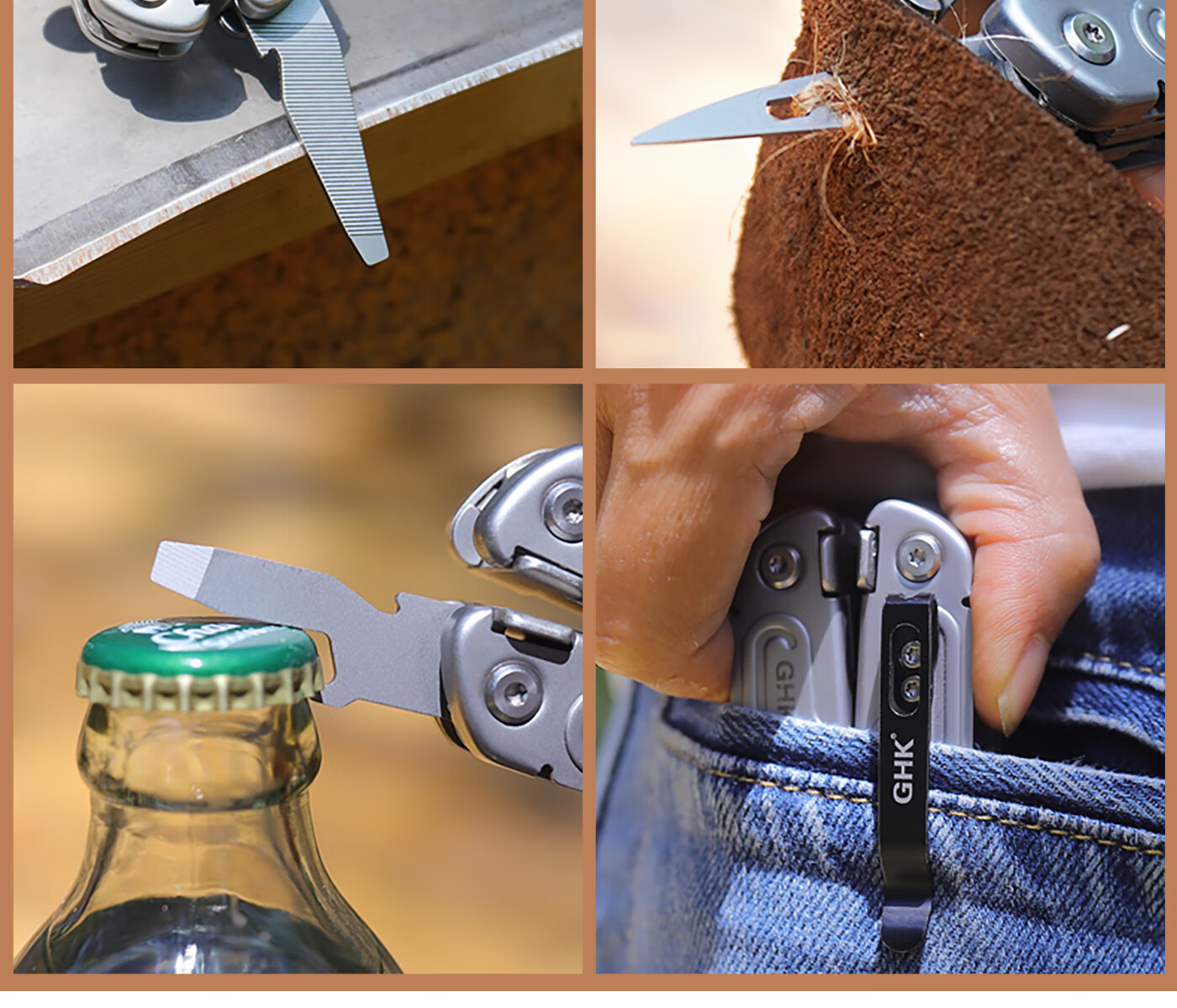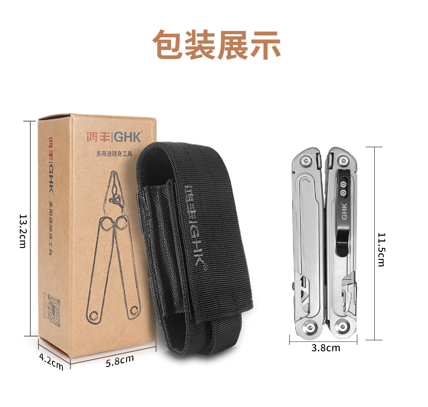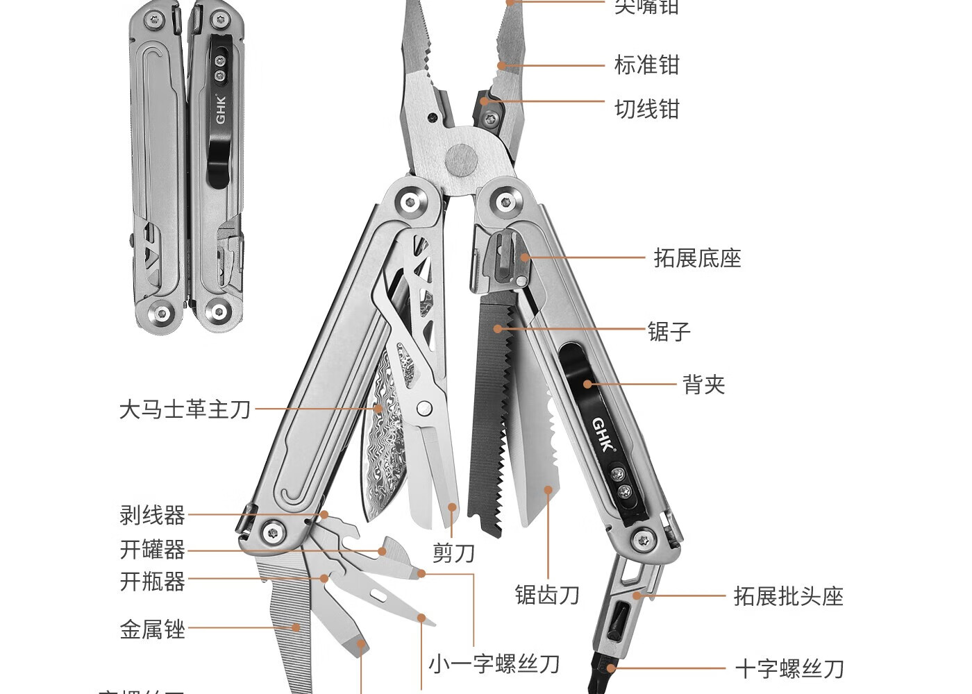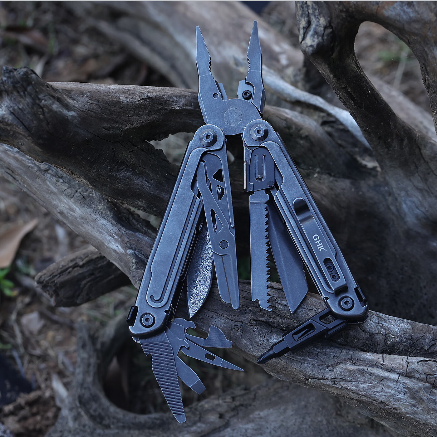 鸿丰应急救援多功能工具折叠钳车载防身小刀户外露营装备组合工具剪刀 GHK20石洗版