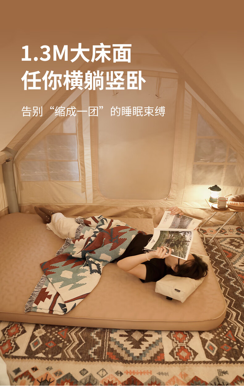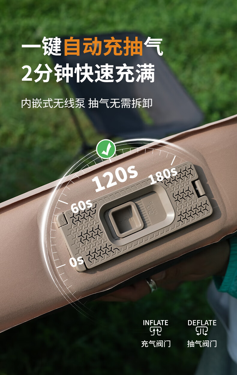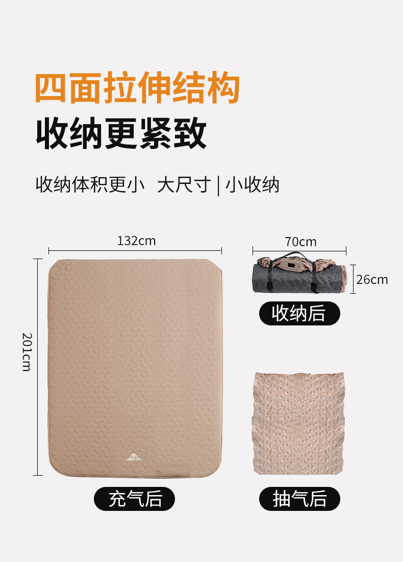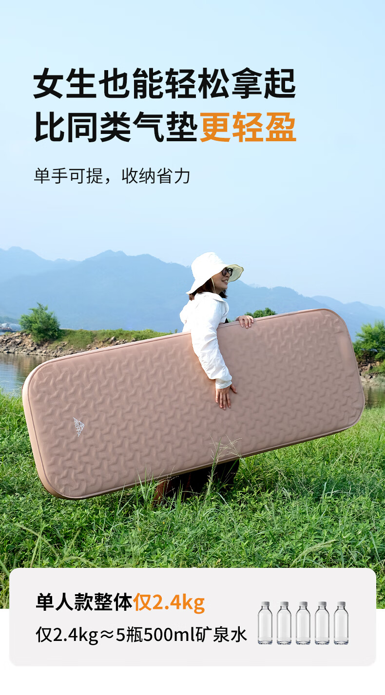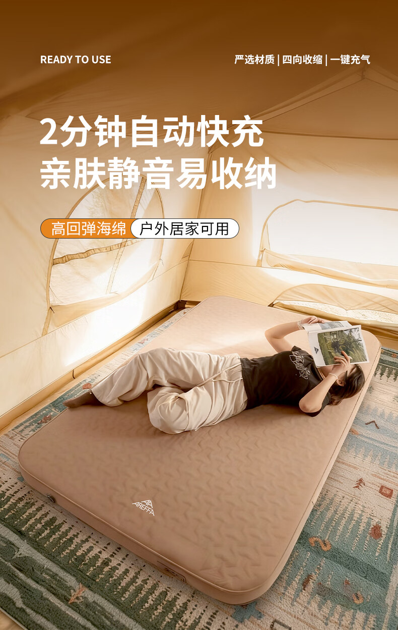 AREFFA充气床垫打地铺全自动户外露营自动气垫床家用睡垫充气垫帐篷地垫 【咖啡】单人自动充气床垫