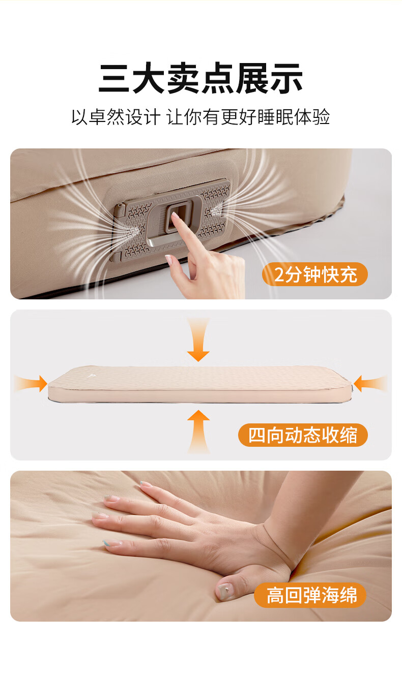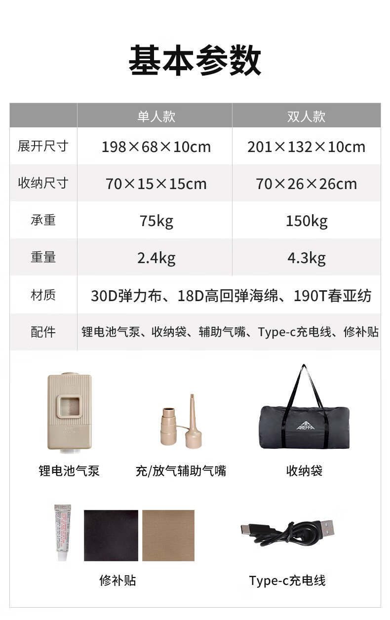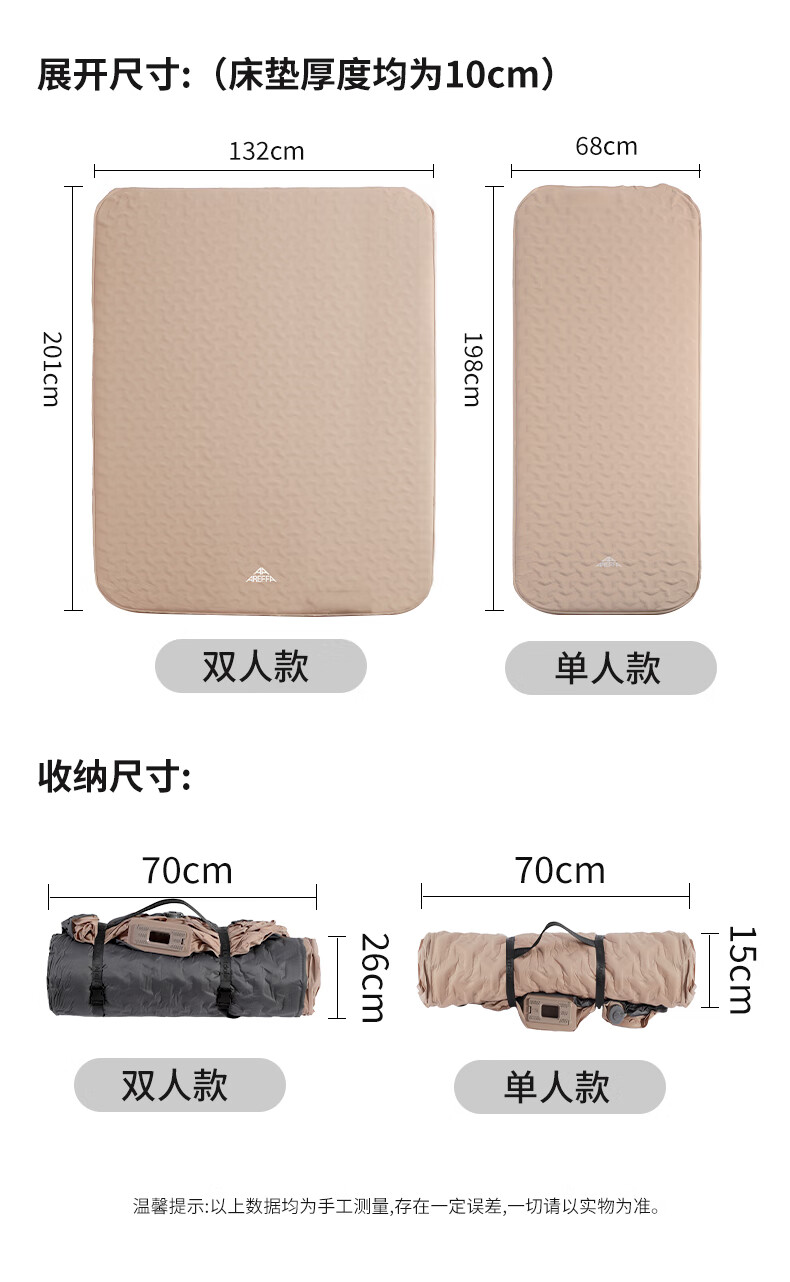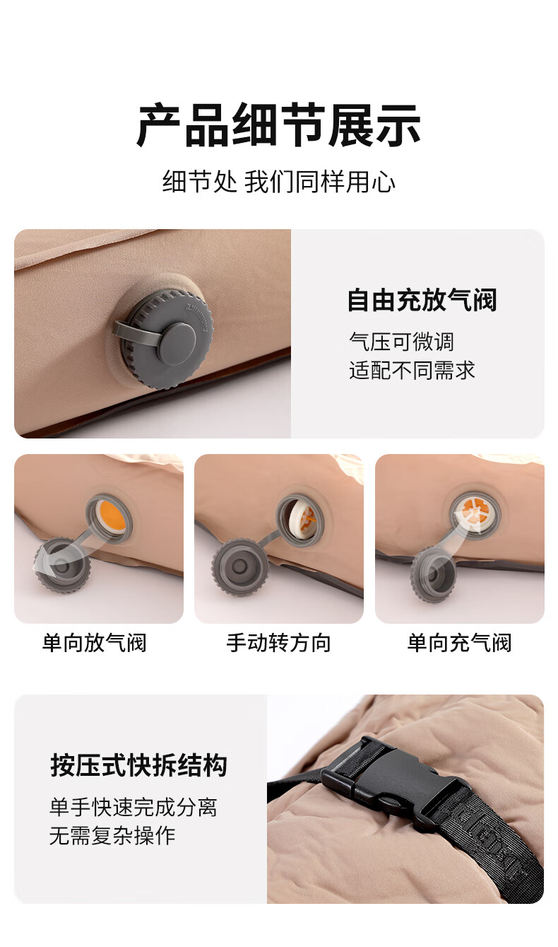 AREFFA充气床垫打地铺全自动户外露营自动气垫床家用睡垫充气垫帐篷地垫 【咖啡】单人自动充气床垫