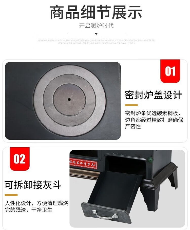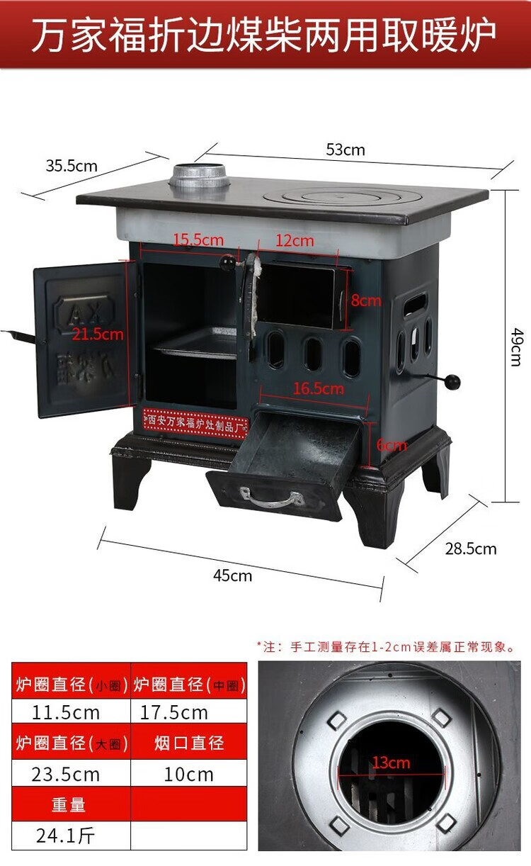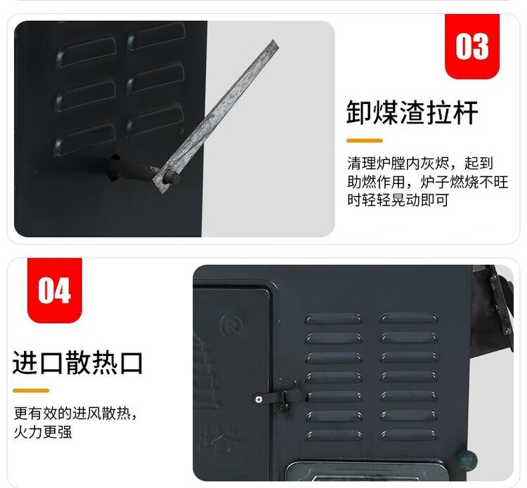 柏潮新型柴火炉灶取暖炉无炉加厚农村家用取暖柴煤炭炉通炕做饭室内 弯头篦子钩子三件套 宽30/长50做饭烧水取暖80平方