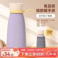 原始人硅胶食品级热水袋注水防爆暖肚子学生随身暖手宝小号暖手袋 丁香紫680ML【食品级可装沸水】