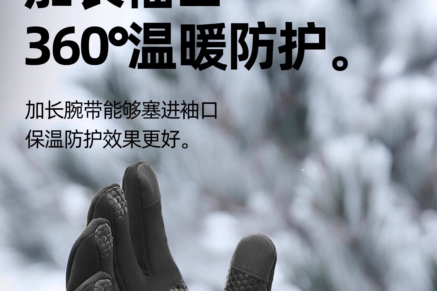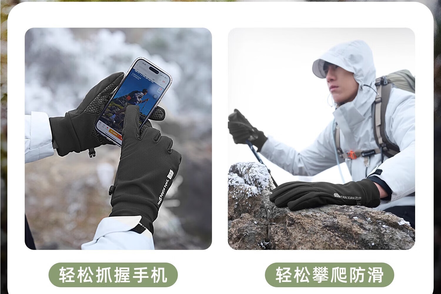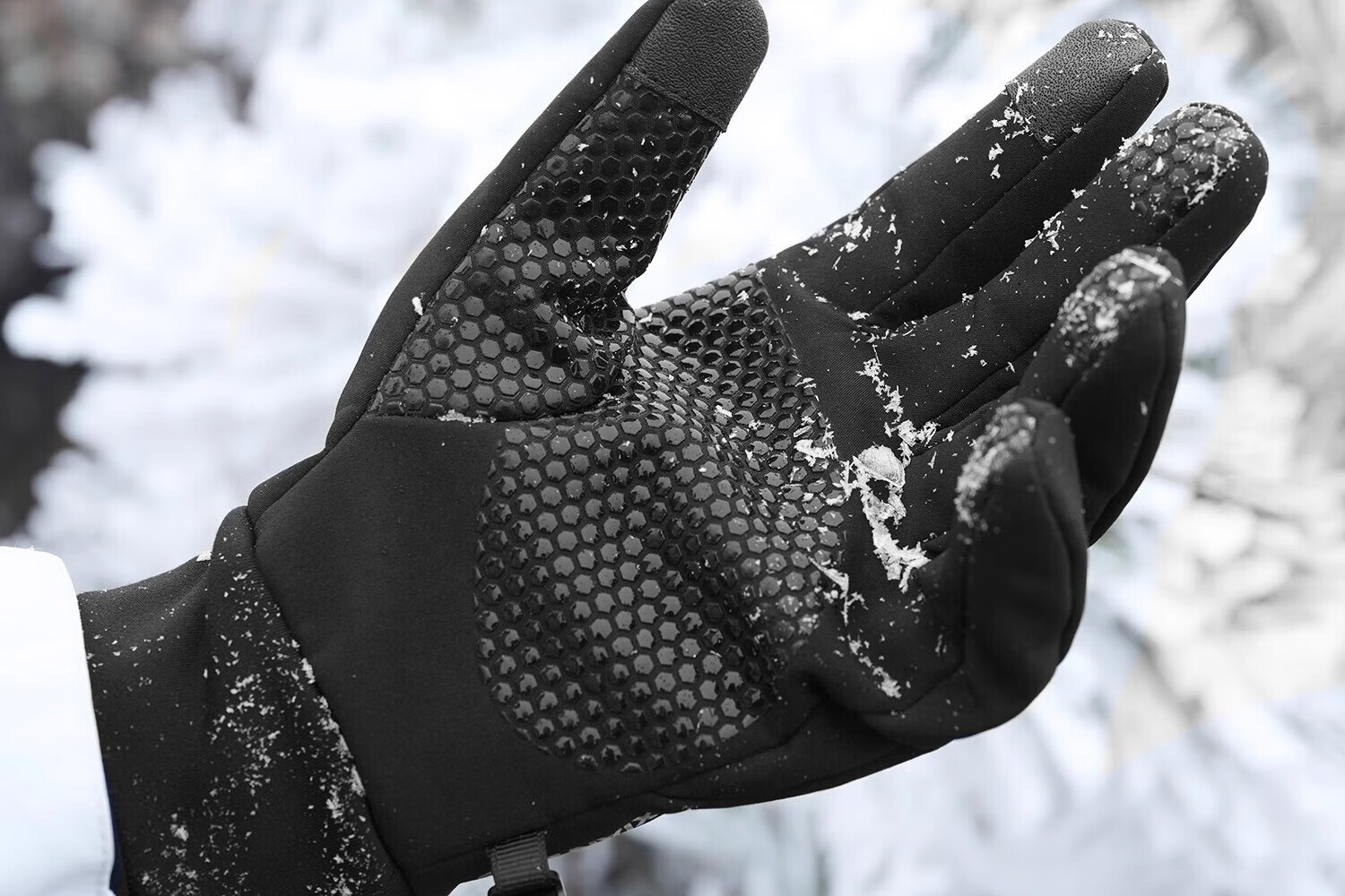 探险者手套冬季男士户外运动跑步登山骑行滑雪防风防水保暖手套触屏加绒 【石墨黑】防泼水加绒手套