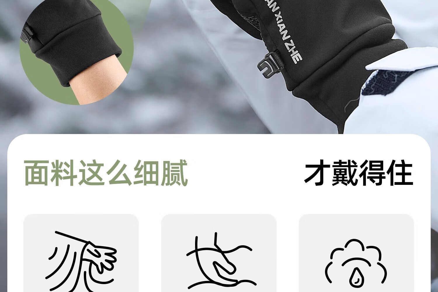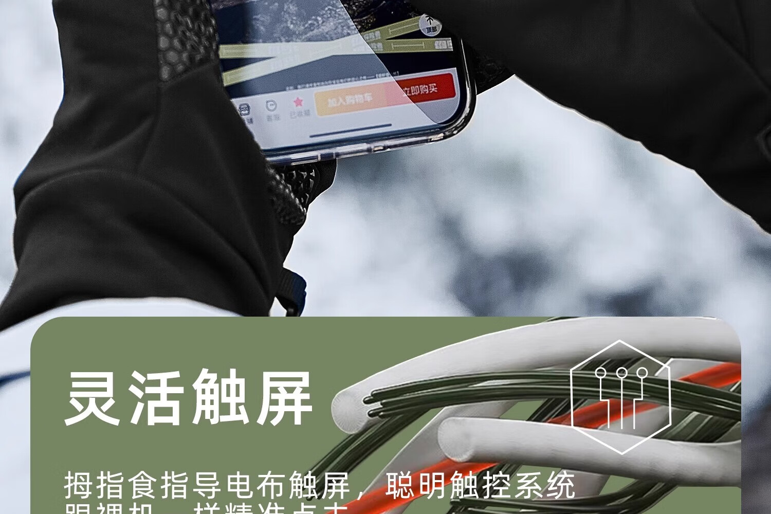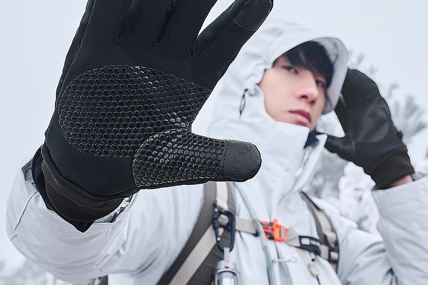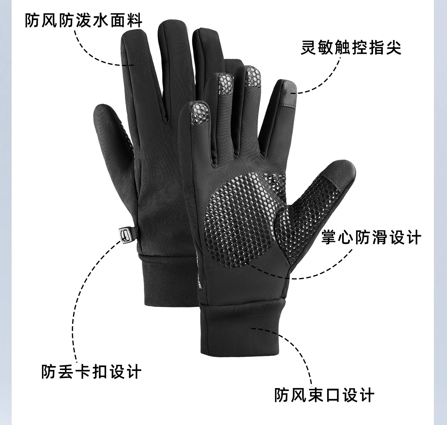 探险者手套冬季男士户外运动跑步登山骑行滑雪防风防水保暖手套触屏加绒 【石墨黑】防泼水加绒手套