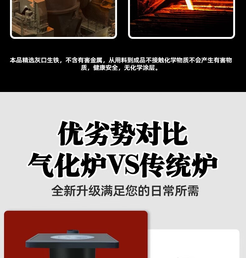 土灶旺【送货上门】气化炉家用室内烤火炉柴煤两用节能无烟柴火炉灶农村 0.8米加厚防爆桌面