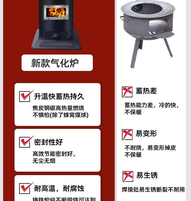 都格新型农村无烟气化气化炉家用室内烤火炉煤炭两用烤火炉铸铁取暖炉 取暖炉经济款