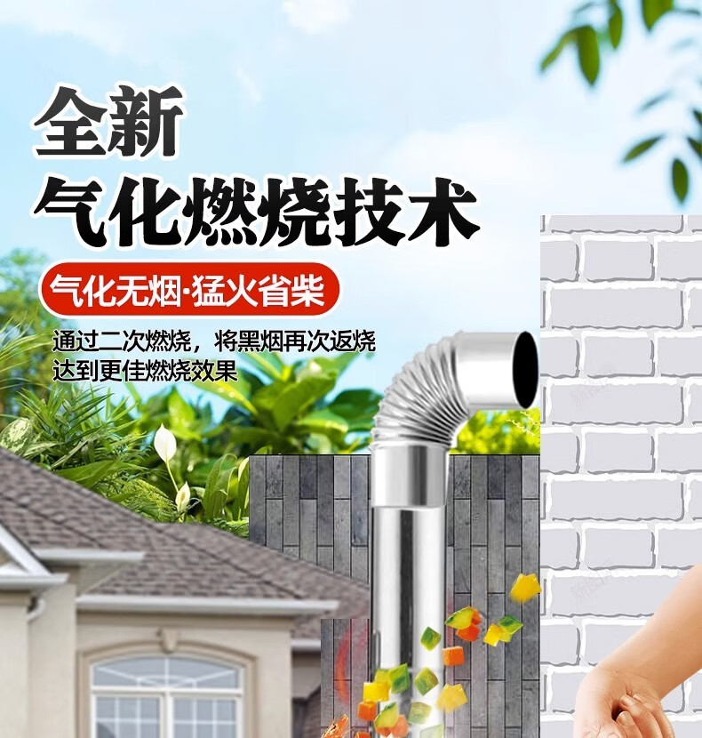 烽点烽点气化炉烧木柴煤两用农村家用冬季取暖室内无烟升温乡下大锅台 大号观月气化炉+2米烟管配件