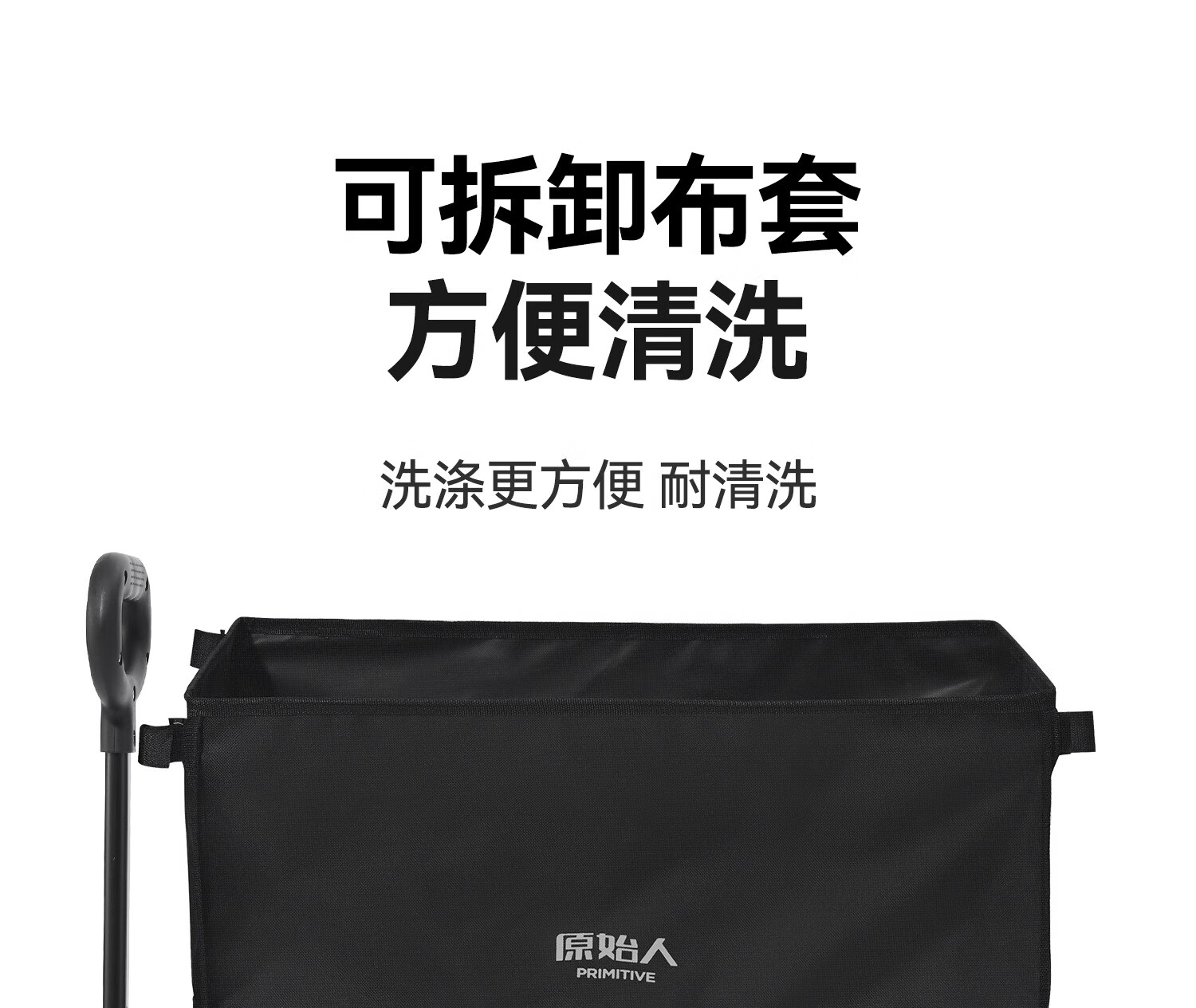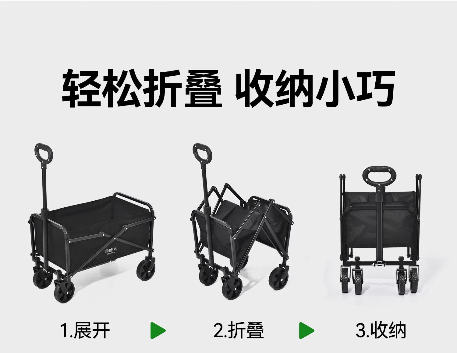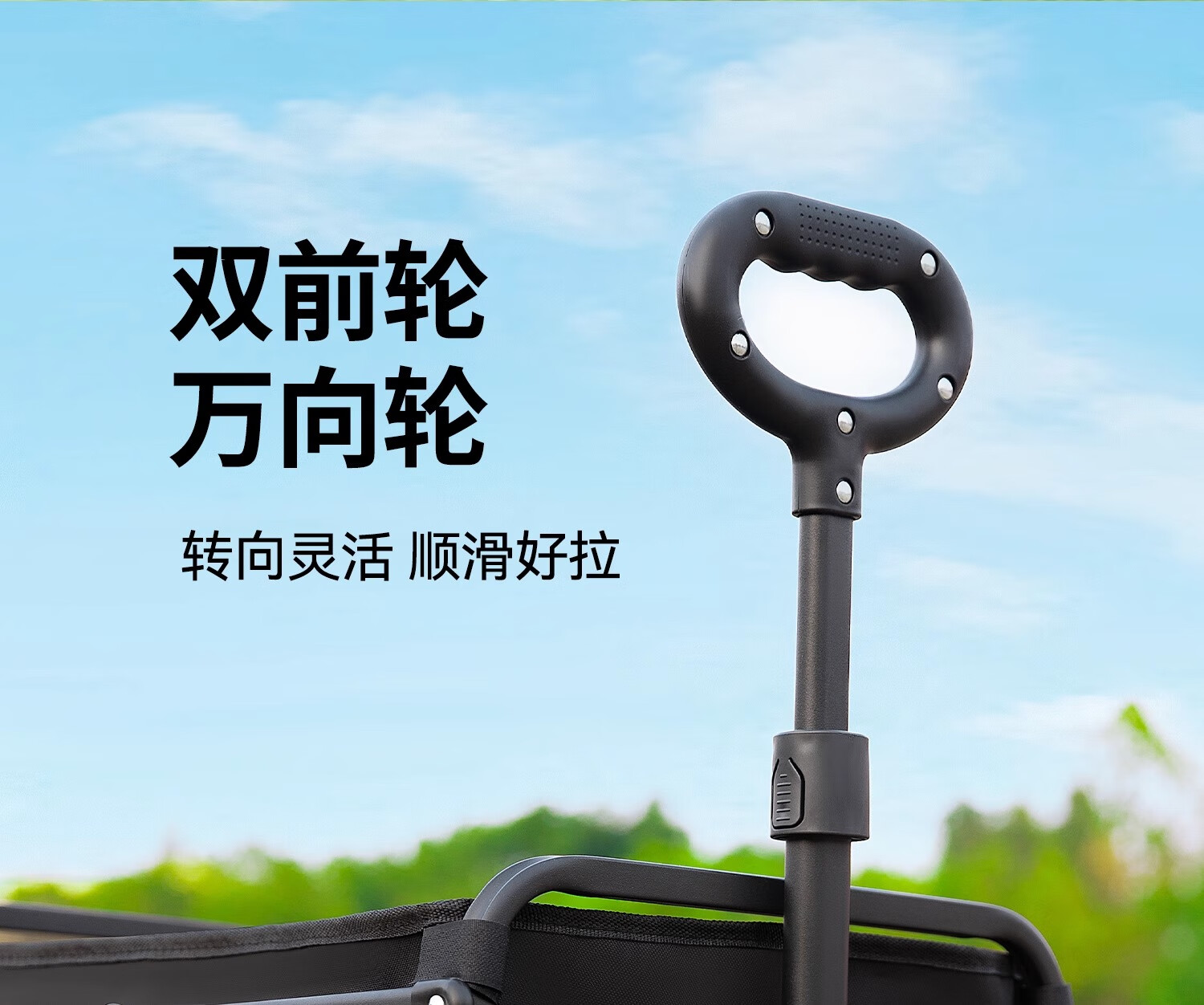 原始人露营推车可折叠户外小拖车野餐手推车收纳小拖车野营拉车儿童可躺 95L 轻巧款黑色【静音万向轮+收纳小巧】
