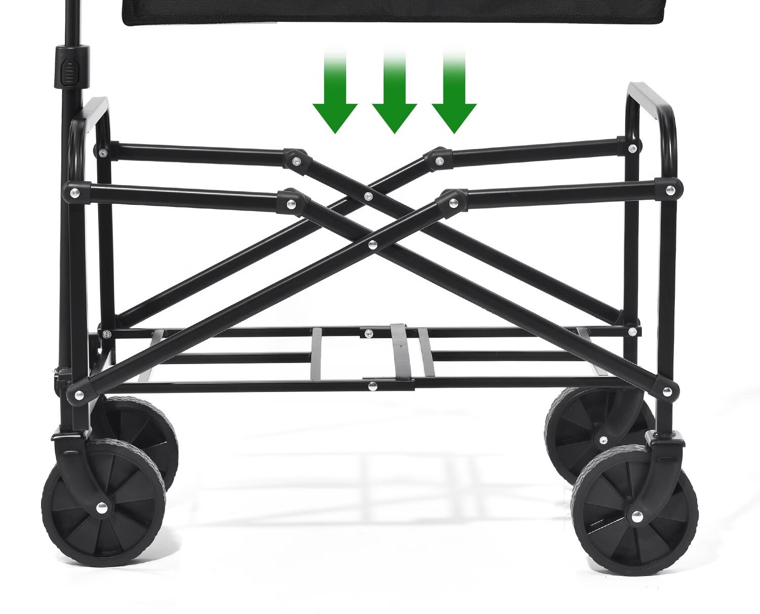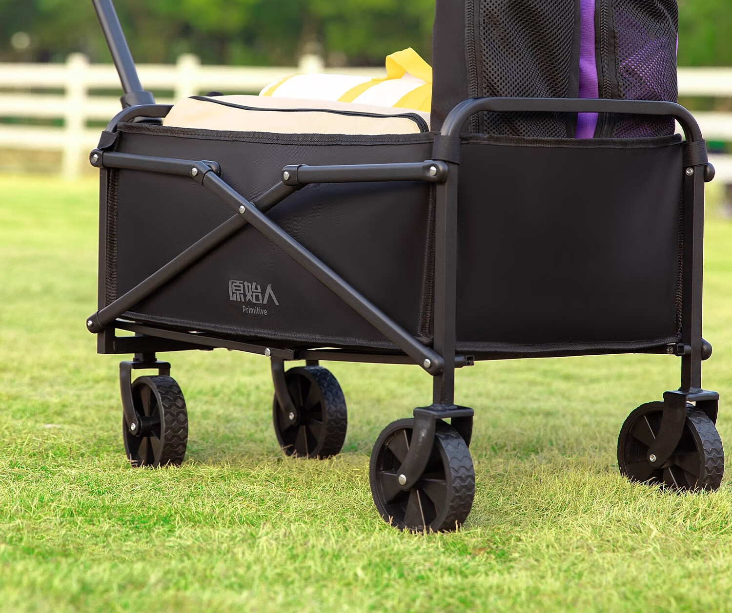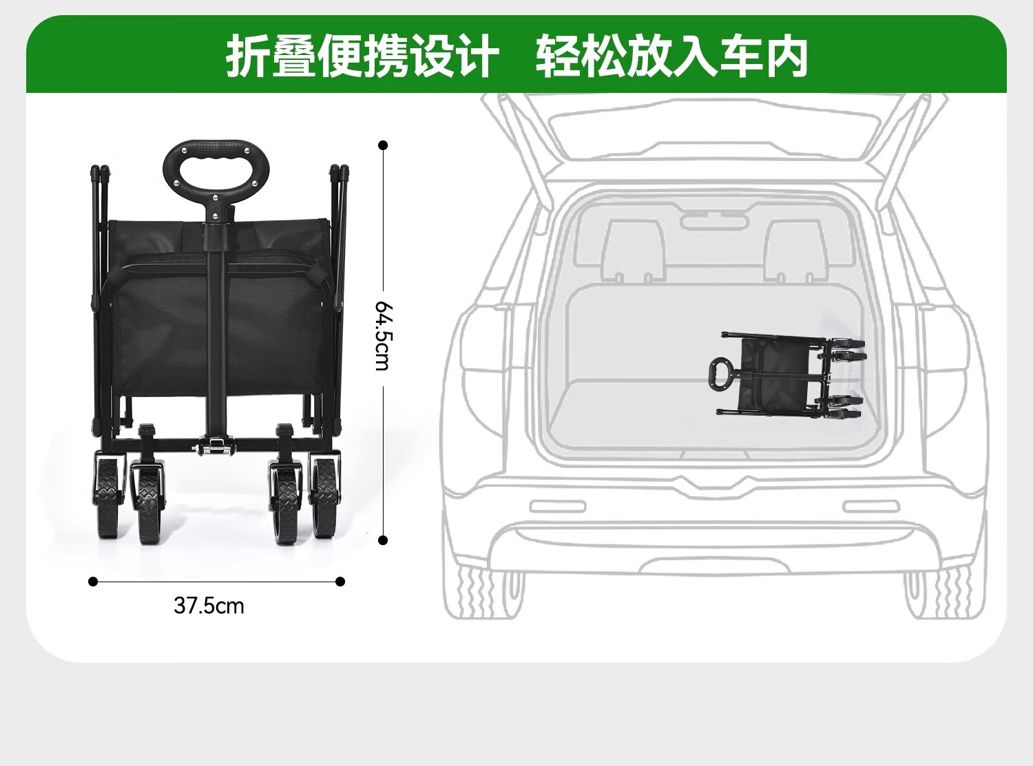 原始人露营推车可折叠户外小拖车野餐手推车收纳小拖车野营拉车儿童可躺 95L 轻巧款黑色【静音万向轮+收纳小巧】