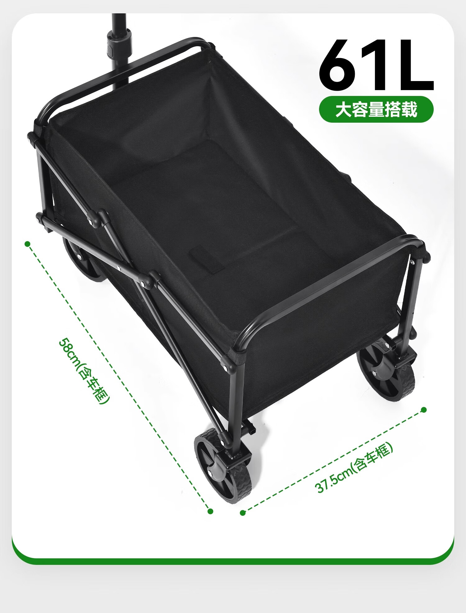 疆屿户外折叠露营车摆摊儿童可躺旅行野餐沙滩旅行带遮阳伞超大号推车 黑色7寸轻便款120L 加大万向轮