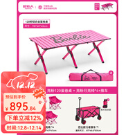 原始人芭比露营桌椅铝合金蛋卷桌户外折叠桌便携桌子野餐全套装备 【亮粉】铝桌+月亮椅*4+推车