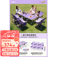 原始人(The Primitive)月亮椅户外折叠椅高承重露营椅子沙滩椅便携式折叠凳休闲野餐钓鱼 薄雾紫经典款*6+120紫色蛋卷桌