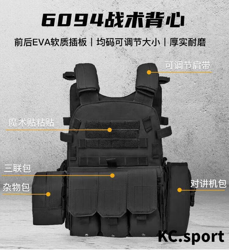 弹挂甲暗区突围可插板6094战术背心战术马甲户外 黑色2个魔术贴R51