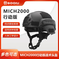 BOOIU旋钮调节MICH2000行动版战术头盔+透明PC防护面罩套装防弹打脸版 单个黑色头盔(不含风镜)