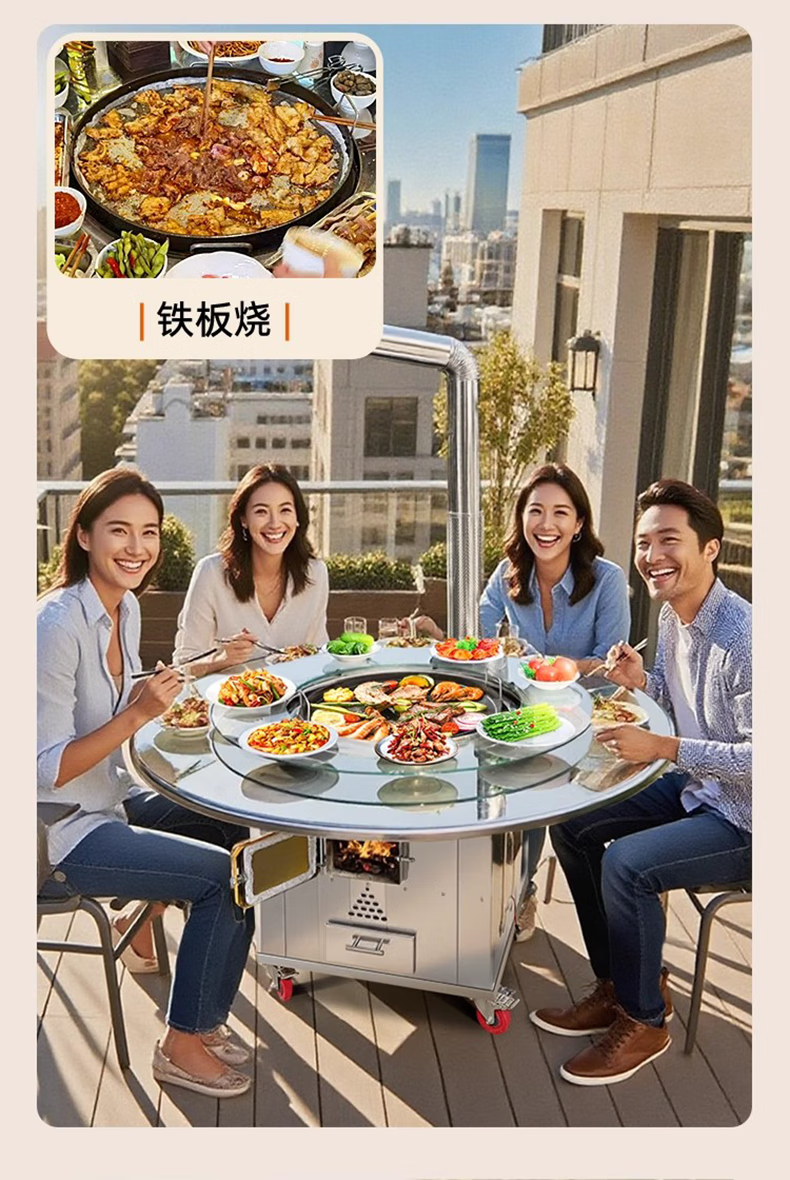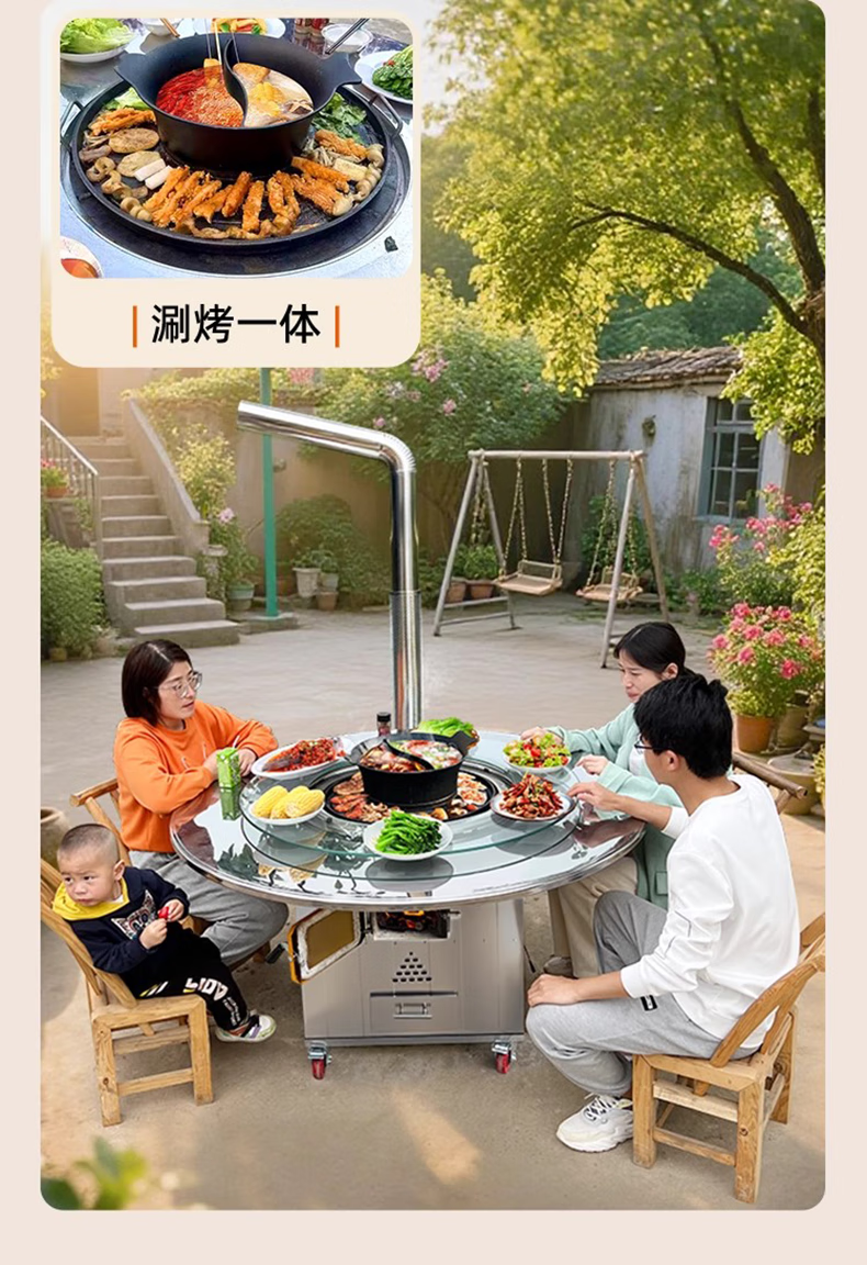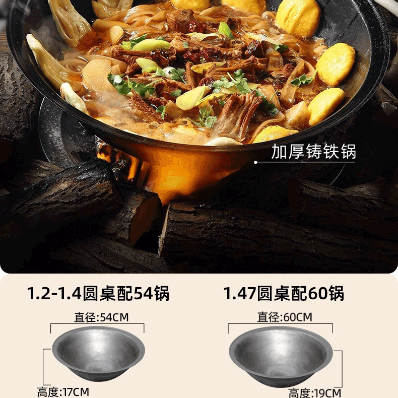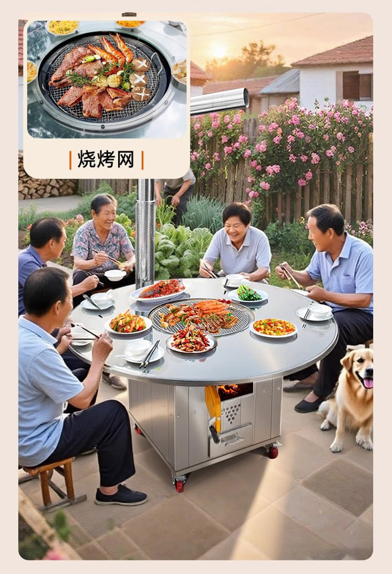 迈高登 不锈钢圆桌柴火灶农村家用灶烧柴火大铁锅炖灶台移动地锅带桌子 1.5米圆桌【配60cm铁锅】