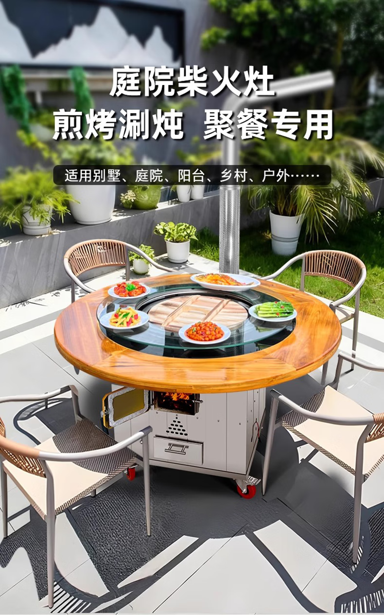 给家里阳光房买了这个不锈钢的灶台桌子,周末一家老小,亲朋好友聚在一起吃吃地锅,还是挺不错的!这个柴火灶有几大功能,可以柴火鸡,可以烧烤,可以铁板烧,可以鸳鸯火锅,还可以烤火还可以围火煮茶,就喜欢这种氛围感满满的。