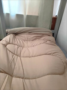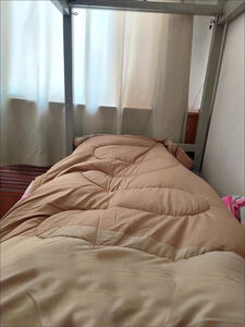 挺厚实的被子,到货直接放洗衣机洗了,天一冷就拿到公司去午睡用了,放在我窄窄的充气床垫上正好给后背一层保护,挺暖和。以后出差之类的也可以带着去宾馆用。就是填充的材质和家里的棉花一样,午睡或者临时用一下完全没问题啦👍 另外很好收纳,比我以为的要容易拿取。