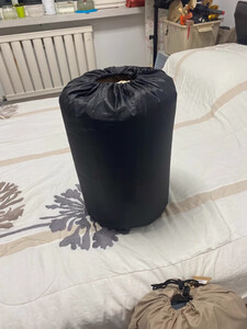 几十块钱买了一个单人的睡袋,是黑色的,然后拆开之后稍微有一点点的味道,晾一晾太阳底下晒一晒就还好,质量还是可以的,不30块钱一个睡袋的价格还是可以接受的。