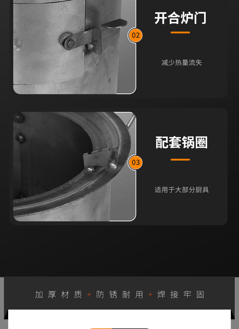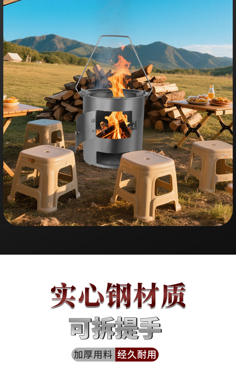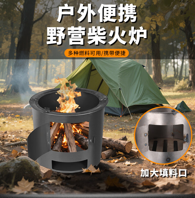 柴火灶新款柴火炉农村家用柴火灶老式烧木柴户外便携铁锅柴火灶台 便携柴火炉内径20cm