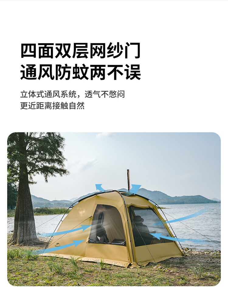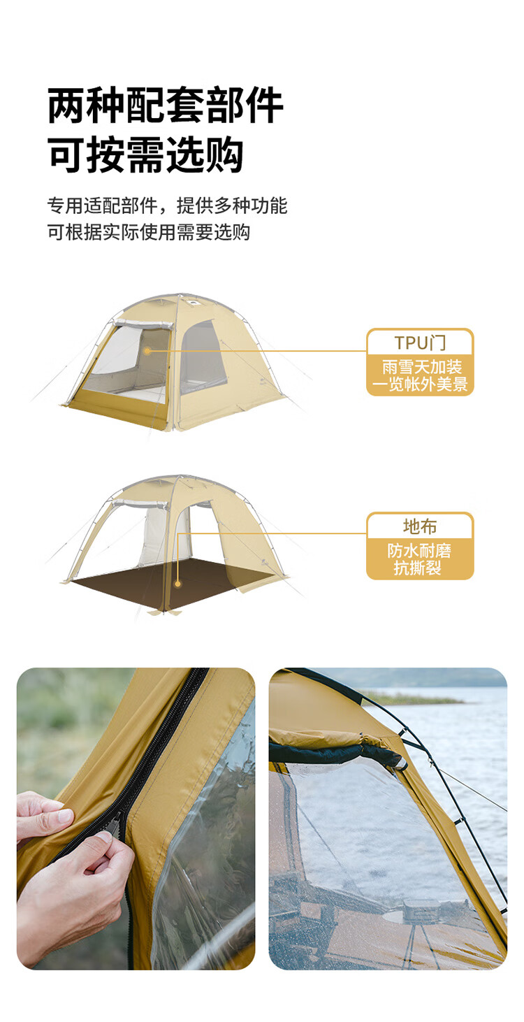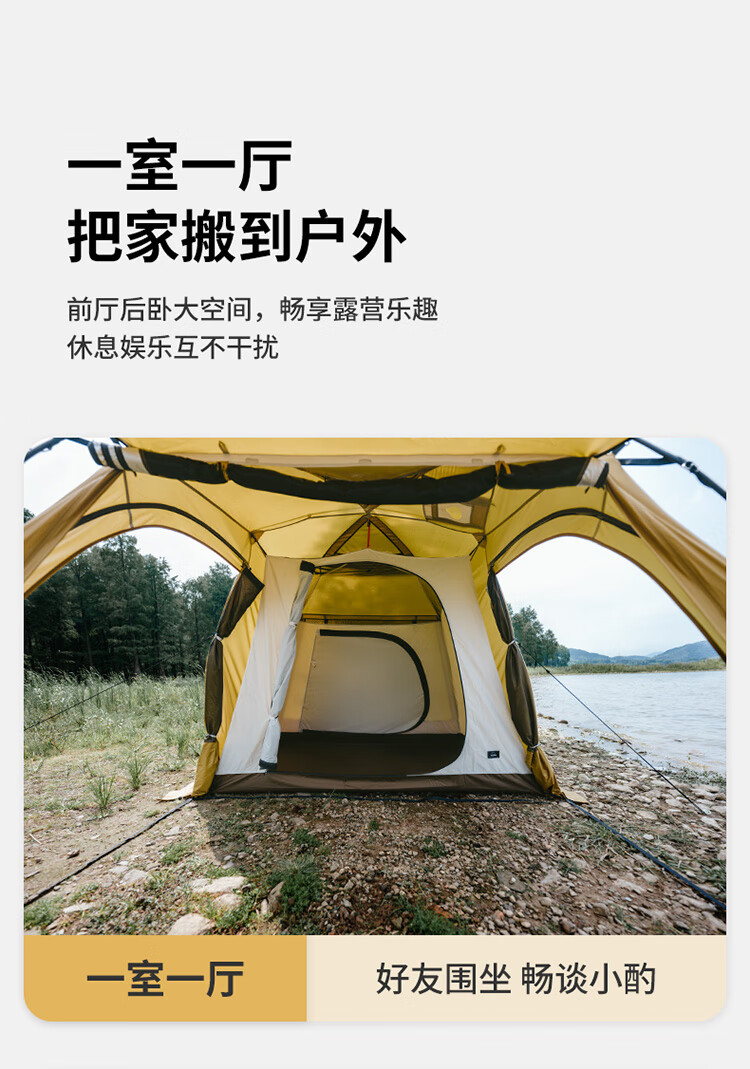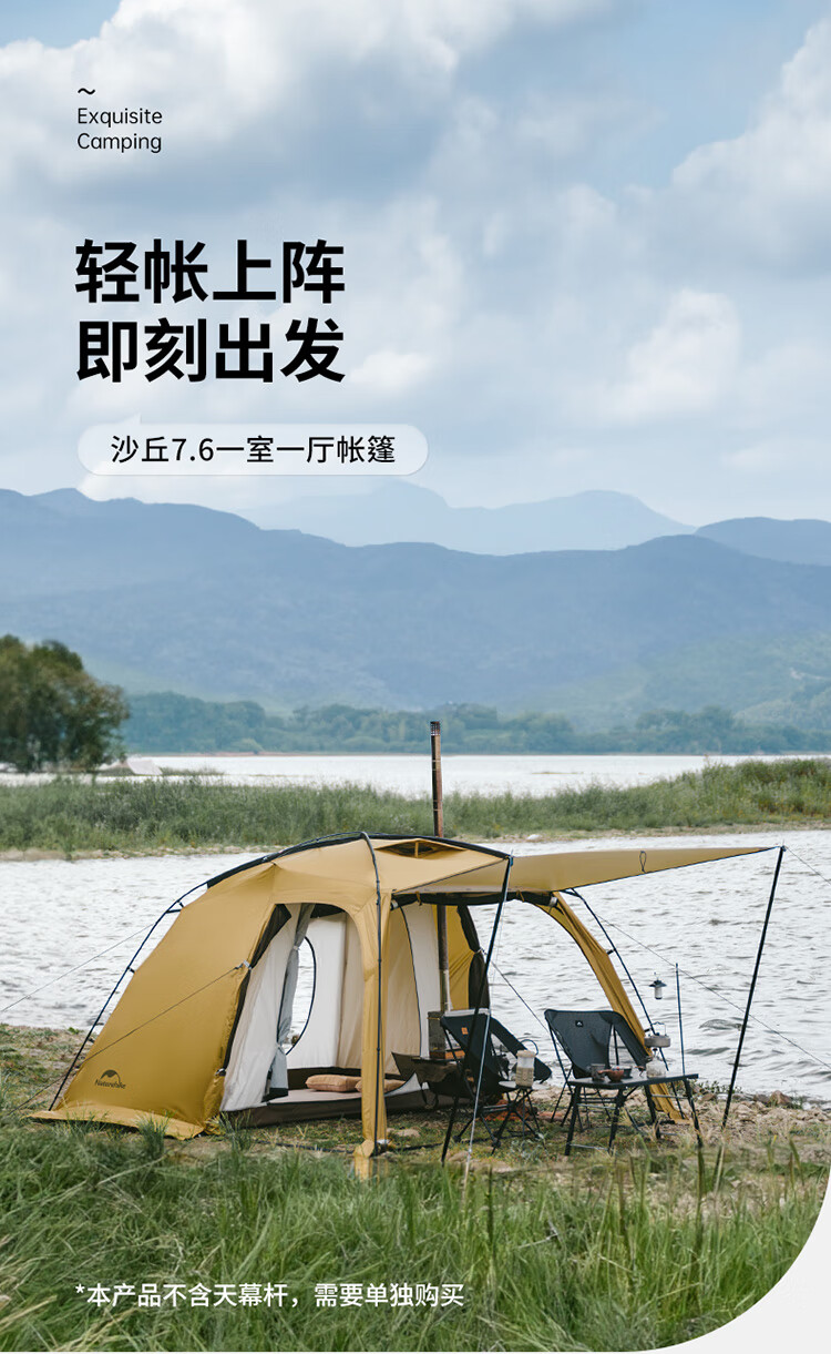 NatureHike挪客沙丘7.6一室一厅帐篷便携户外露营大空间防雨防晒过夜帐篷 荆棘黄-TPU门