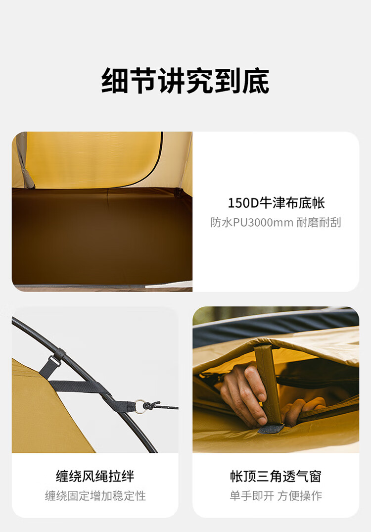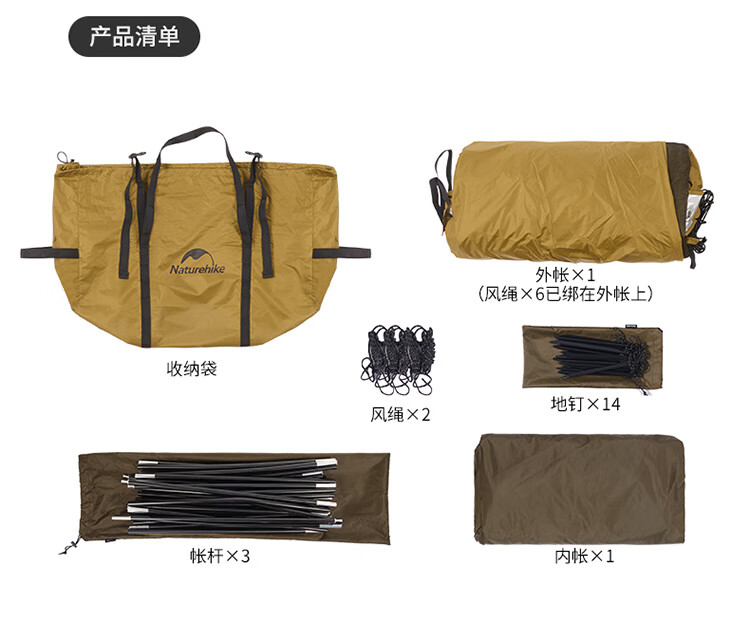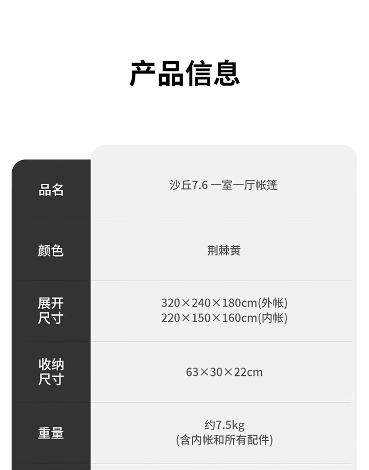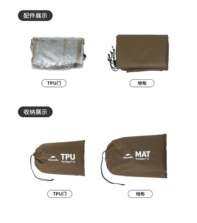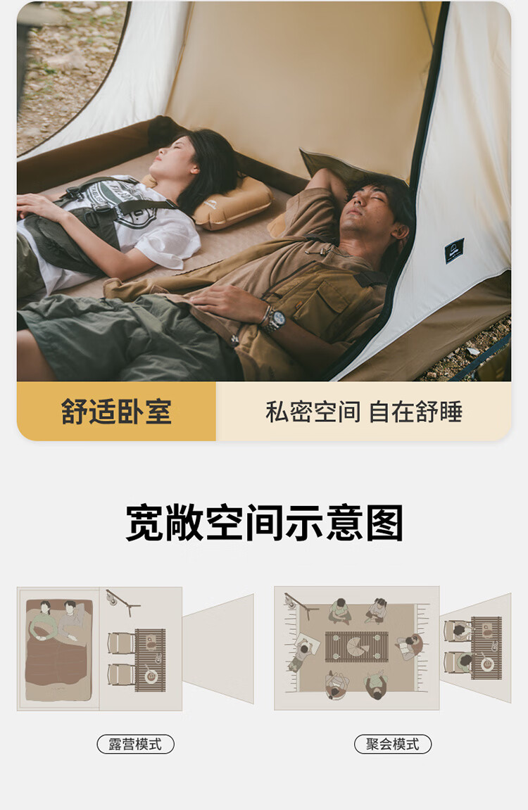NatureHike挪客沙丘7.6一室一厅帐篷便携户外露营大空间防雨防晒过夜帐篷 荆棘黄-TPU门