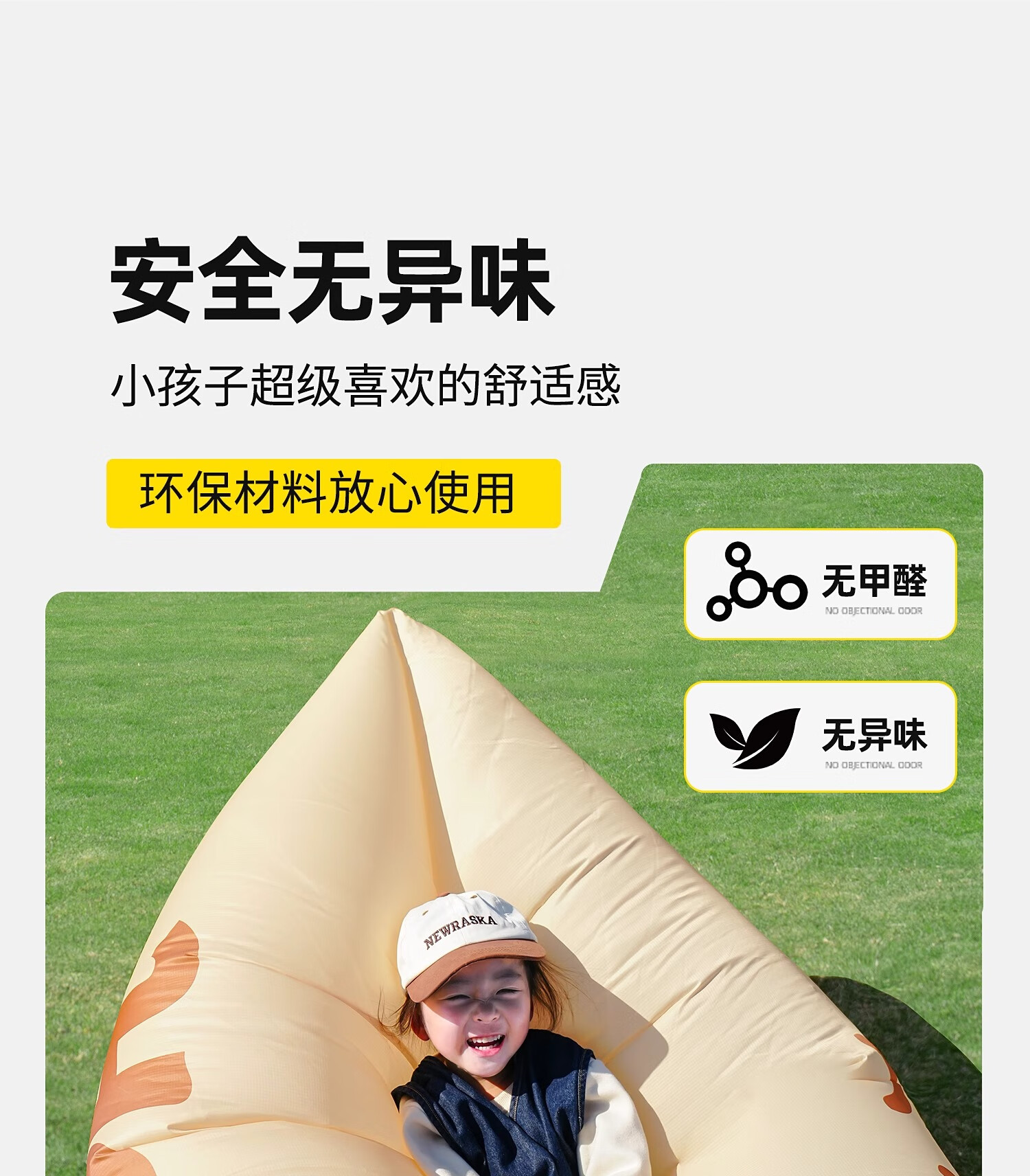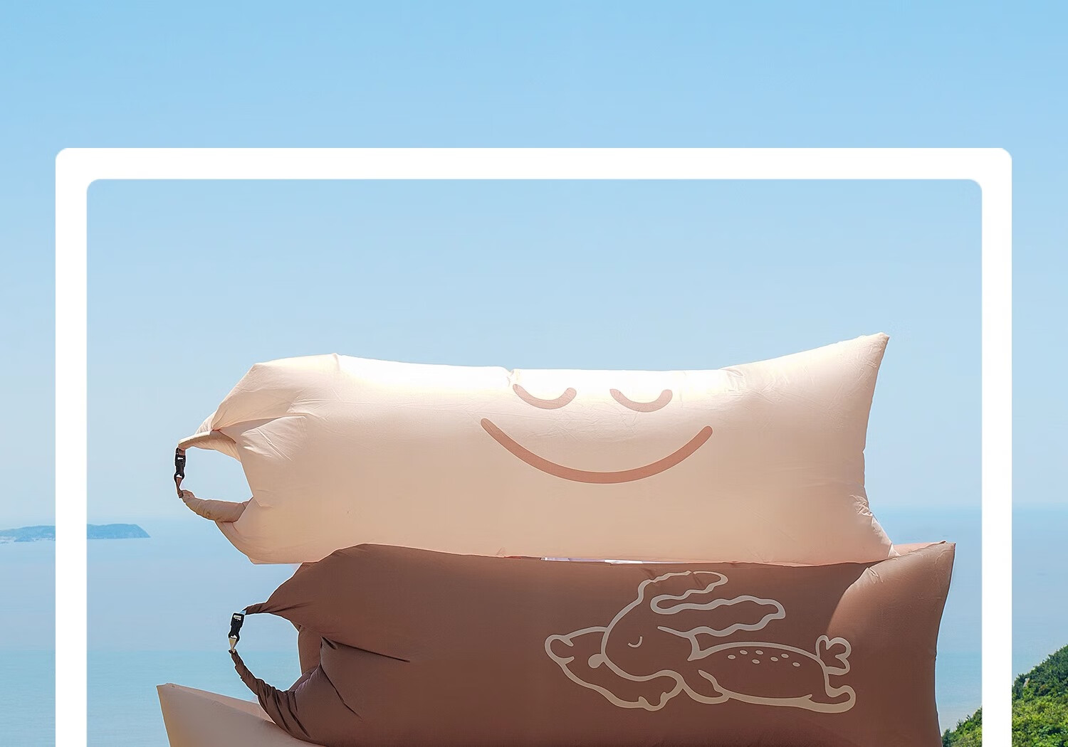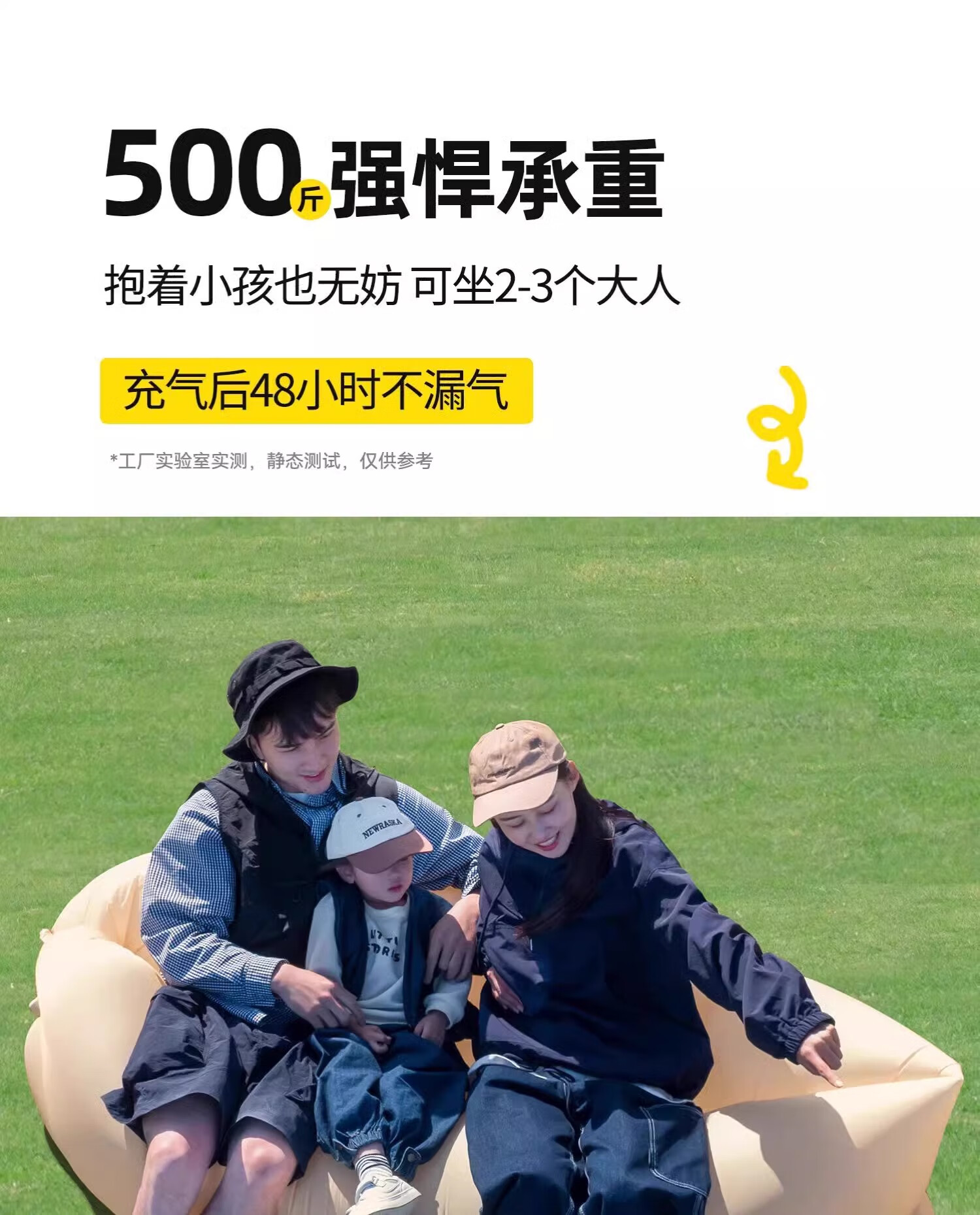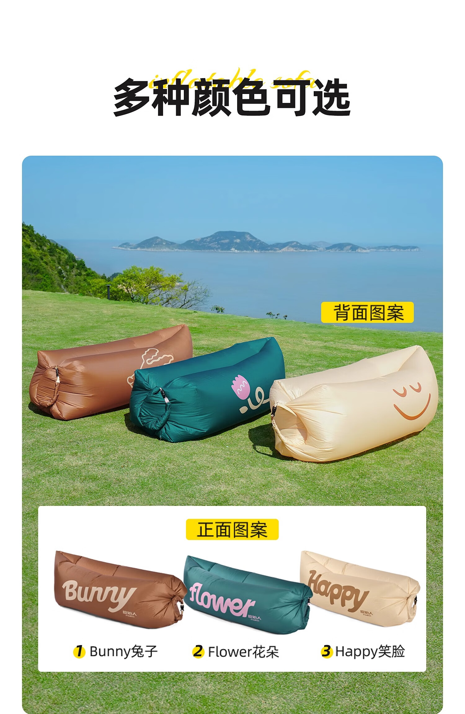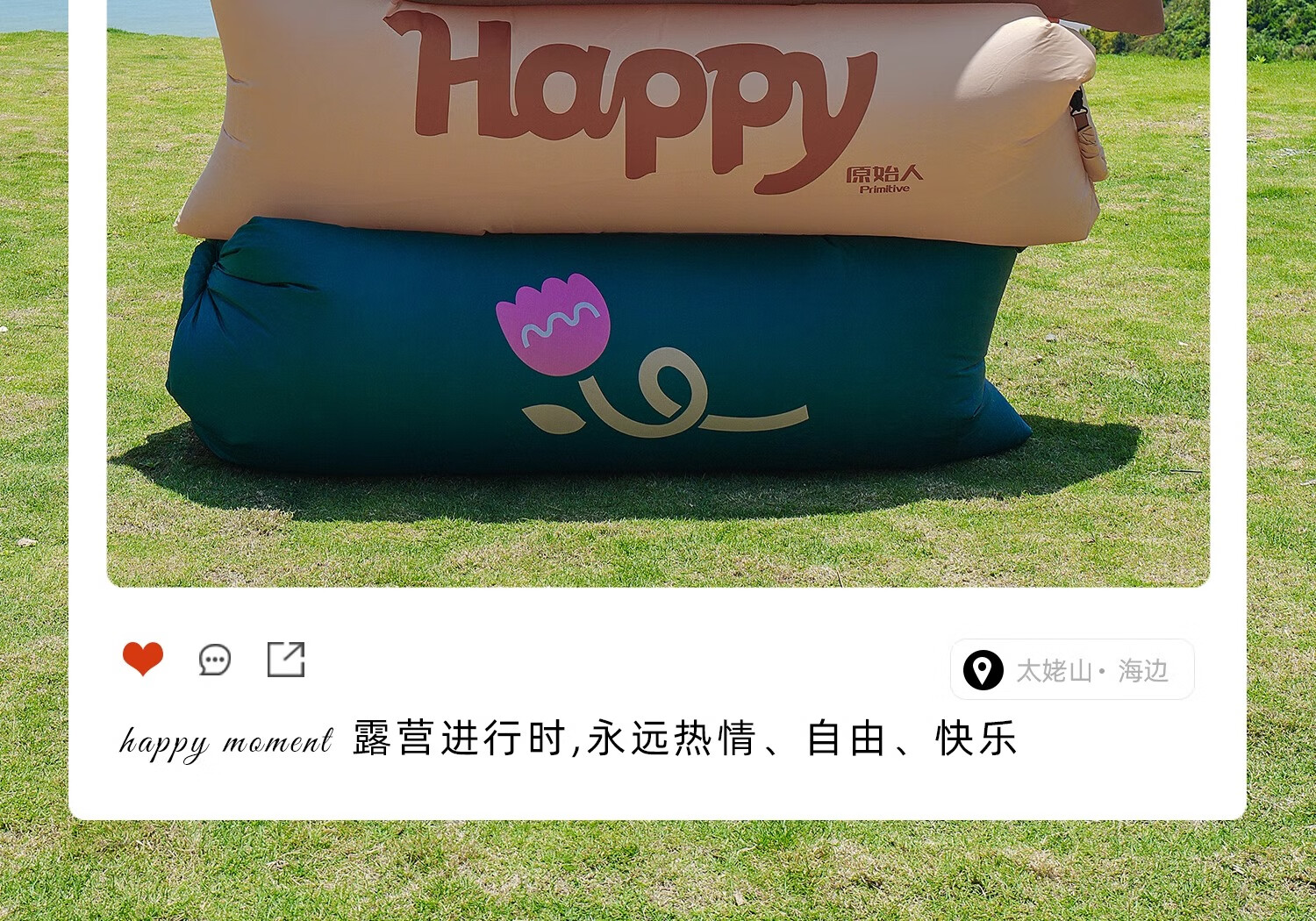 原始人(The Primitive)充气沙发户外露营便携式懒人空气床音乐节折叠单人沙发袋床垫露营 加长Happy笑脸【赠收纳袋 承重500斤】