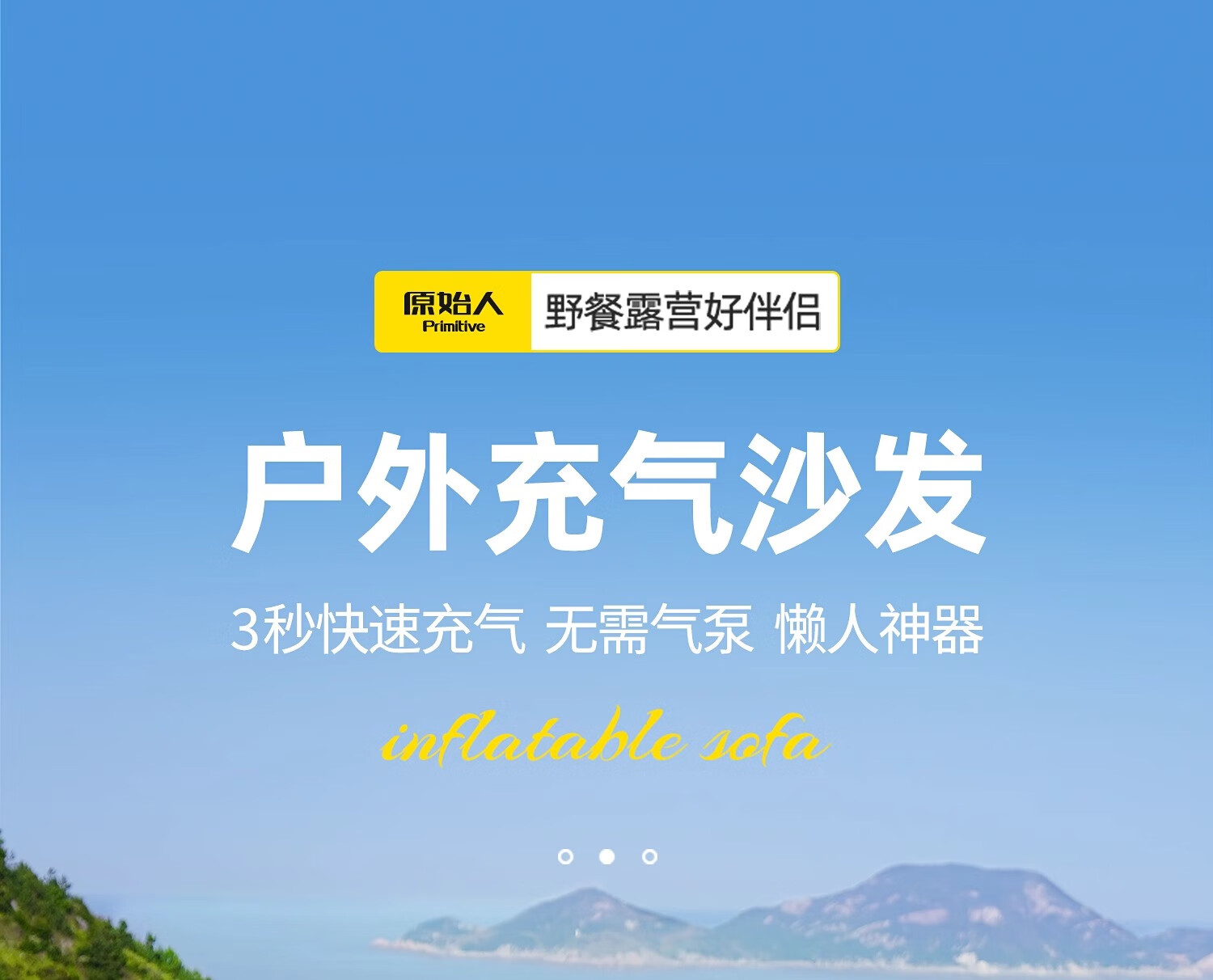 原始人户外露营充气沙发懒人午休便携垫子音乐节单人空气沙发袋双人床垫 芭比白月光-含收纳袋 快速充气