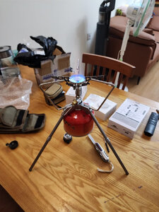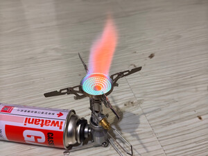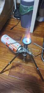配上三脚支架好用得不得了,比卡式炉省气,火力还猛。 四口人,250g气罐一顿晚饭一顿早饭,米饭面条意面煎鸡蛋油焖大虾烧洗脸水,还煮了半个小时不成功的竹筒饭,烧了一个多小时,气还剩下一点点。 防风效果不错,炉头上滴上水不妨碍点火。