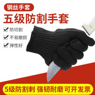 军云五级防割手套校园物业防割手套不锈钢钢丝防割防刺5级加厚手套 单股钢丝