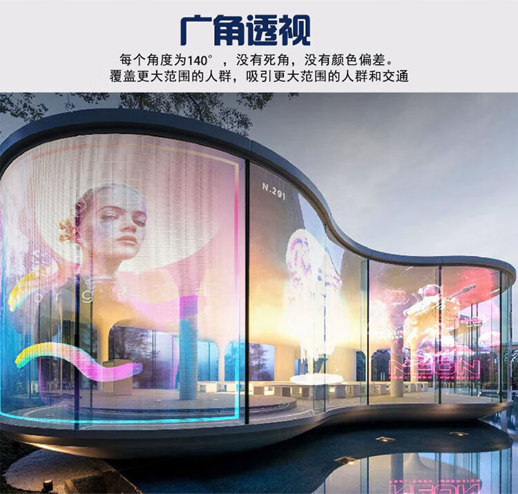 LED全息屏透明屏玻璃橱窗透明屏玻璃幕墙隐形屏玻璃幕墙透明屏透光LED屏创意屏 湖南彩艺光电 P3.9 (定制产品,请详细咨询客服)