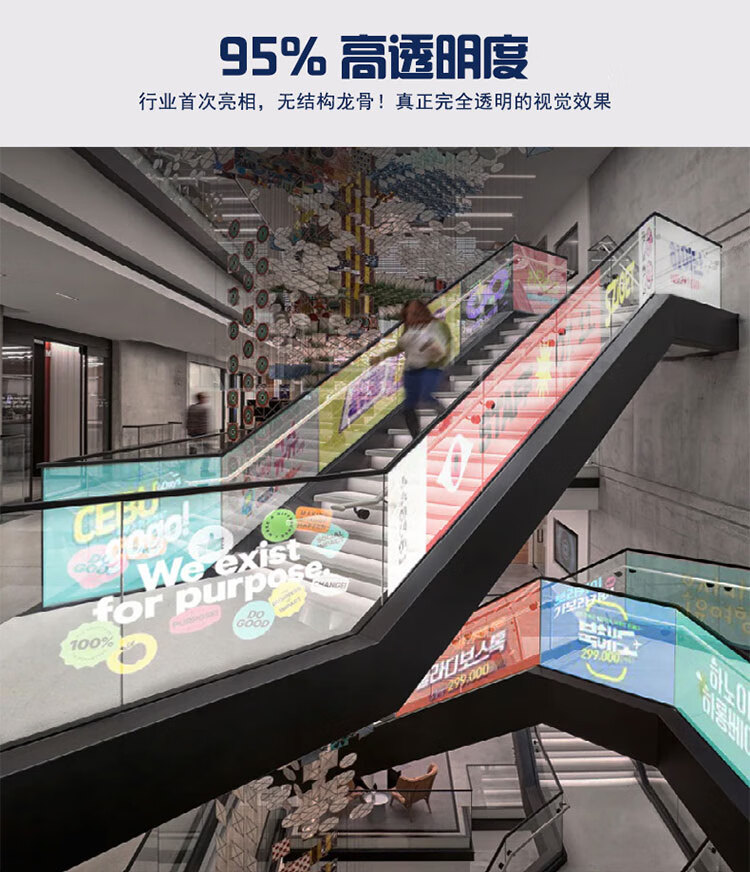八柱OLED透明屏 超薄高清自发光 30寸55寸77寸600cd高亮高对比度 出图方案上门安装和特殊定制