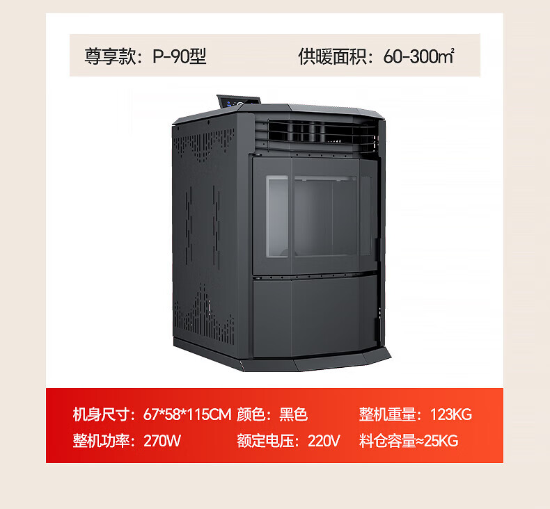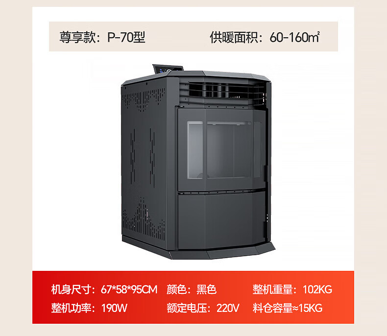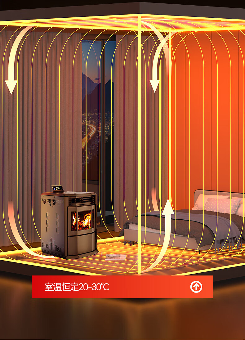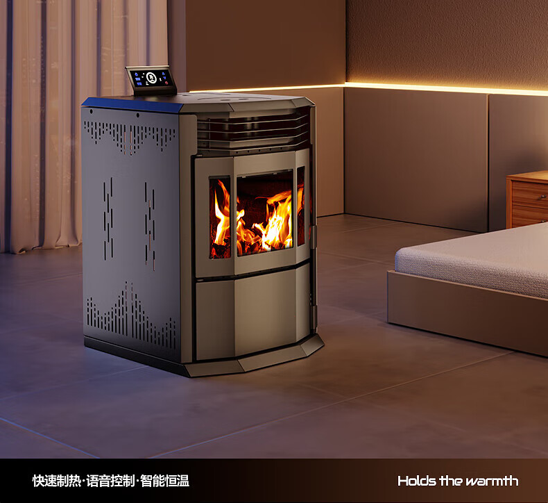 磐玺数控柴火取暖炉生物质颗粒取暖炉全自动燃料烤火炉智能APP控制无烟 (推荐60-120平方)P60型