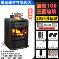 昊润通生物质颗粒取暖炉农村家用室内客厅全自动智能烧颗粒节能炉子黑色 烧水款 智尊100P 供暖30平-100平