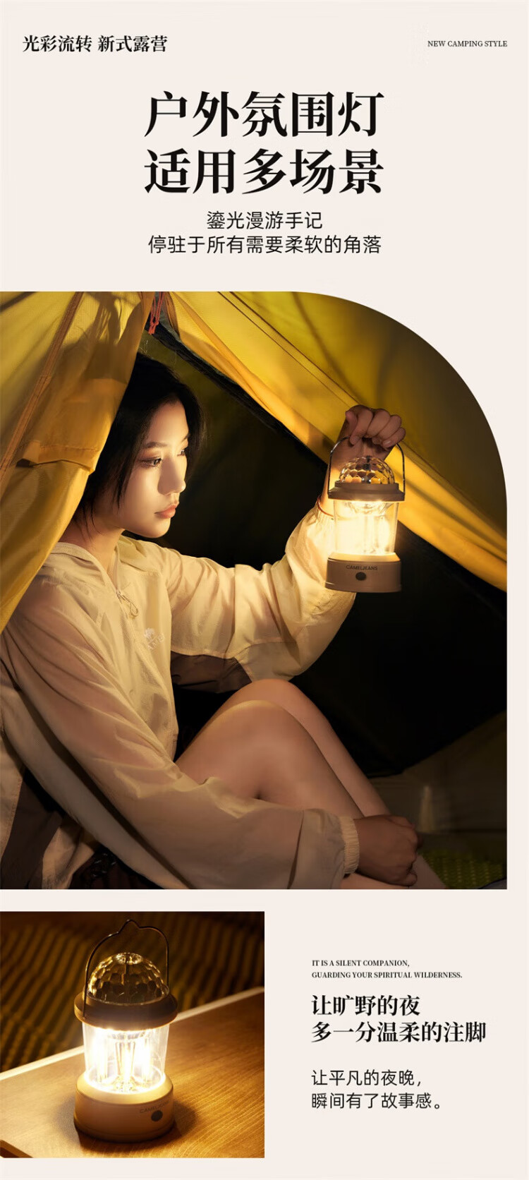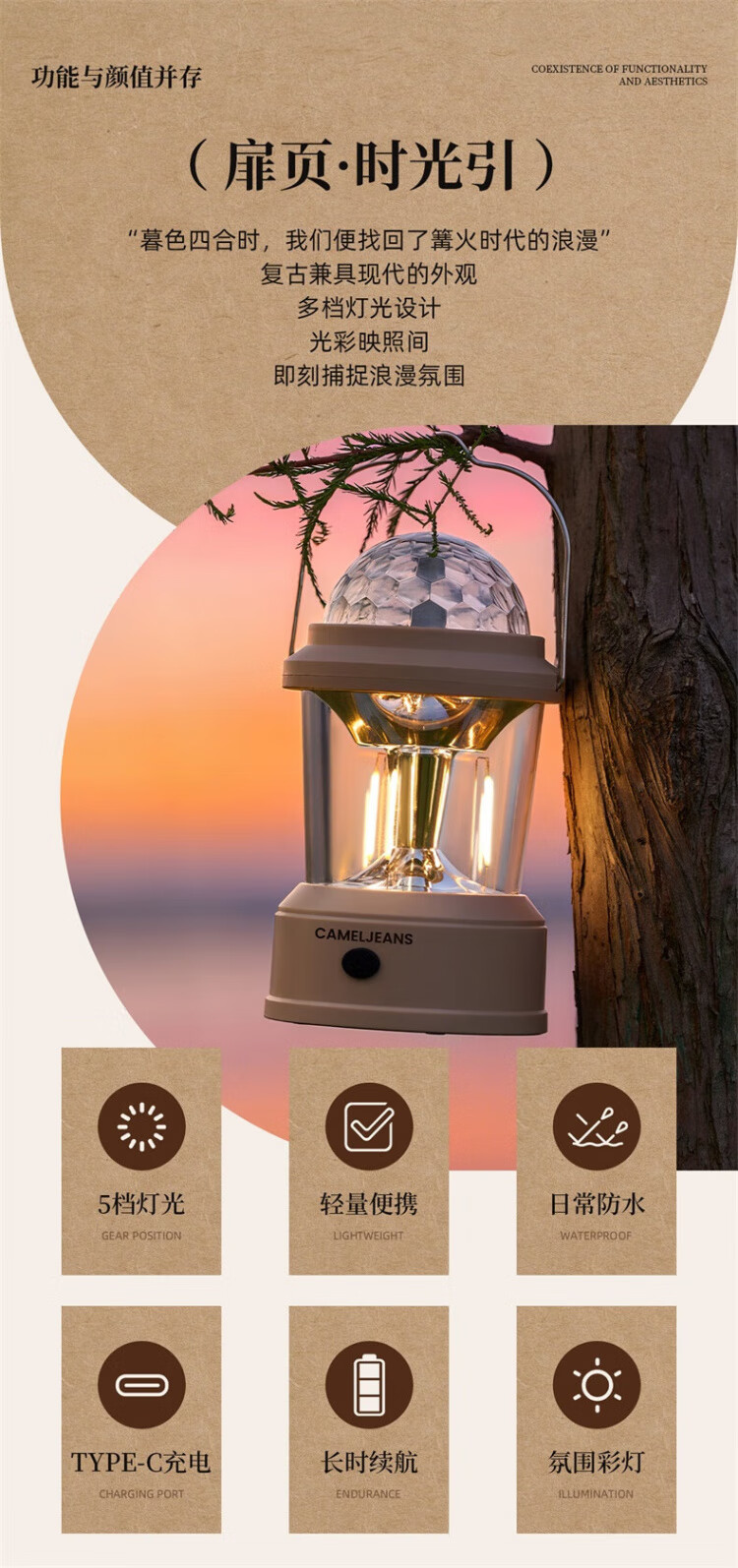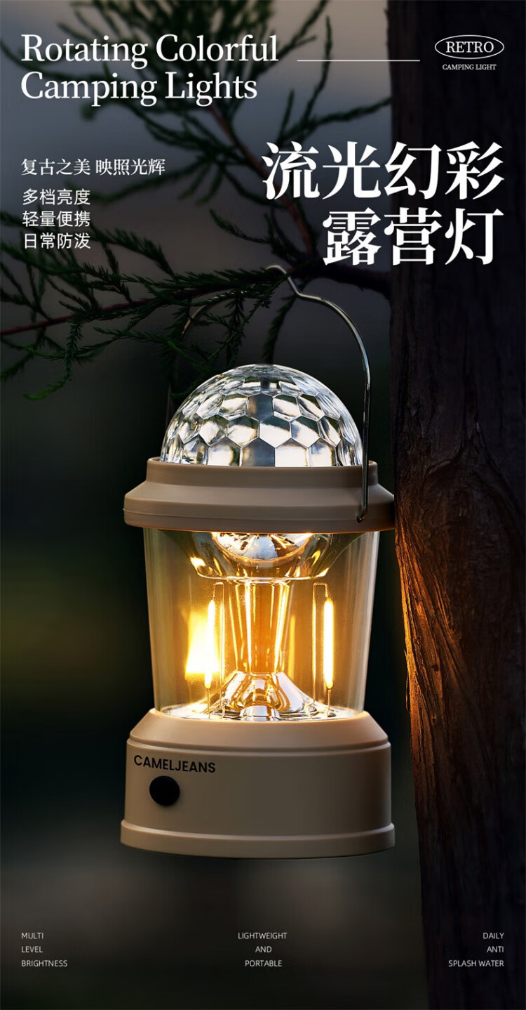 CAMELJEANS户外露营灯多功能照明长续航充电可移动帐篷灯手提马灯 露营灯-米色-175CJ46025