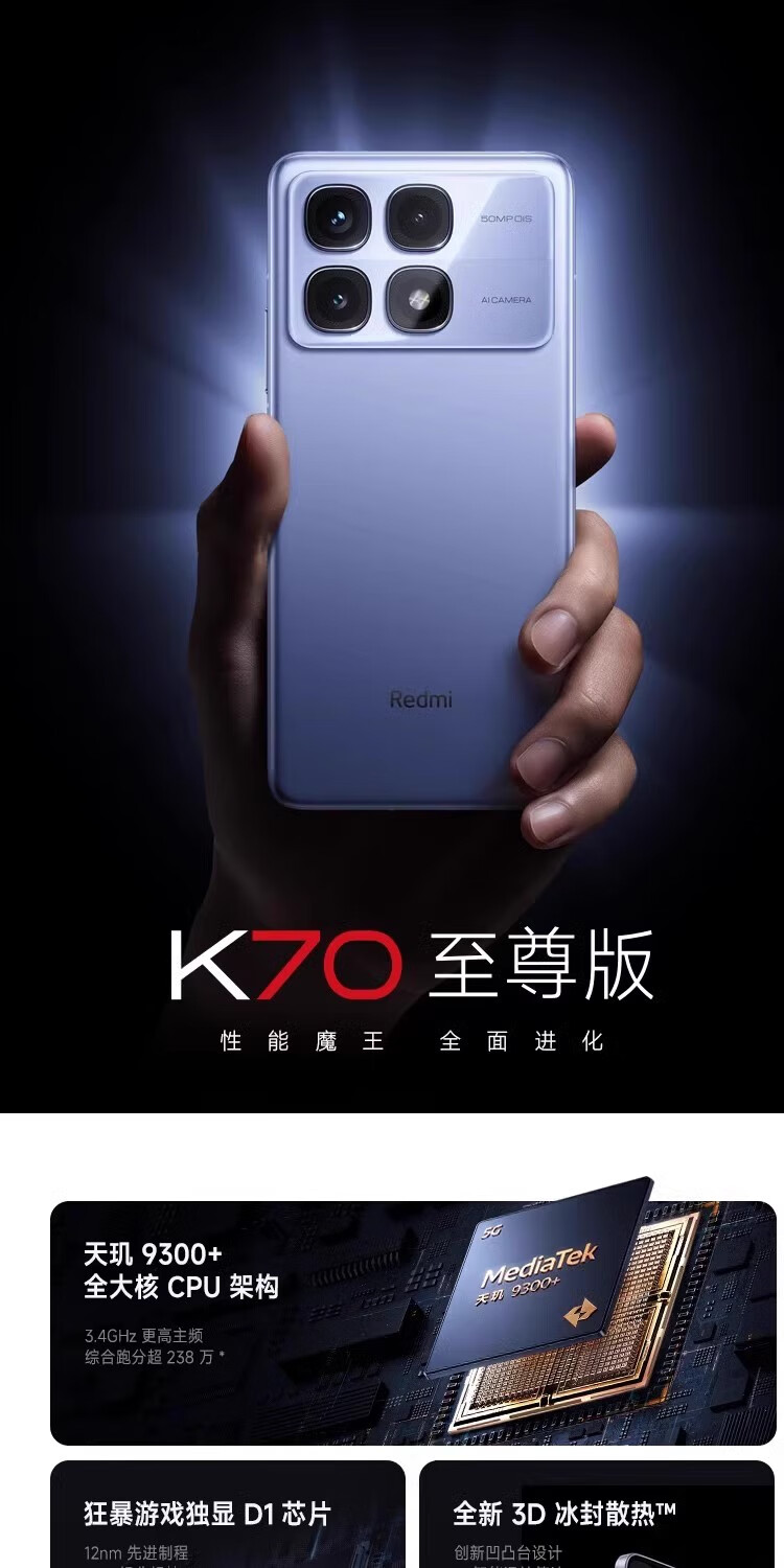 小米(MI)小米样机 K70至尊版展机天玑9300游戏拍照高性能5G版赠送运费险详询客服 冰璃蓝 12GB+512GB_5G通