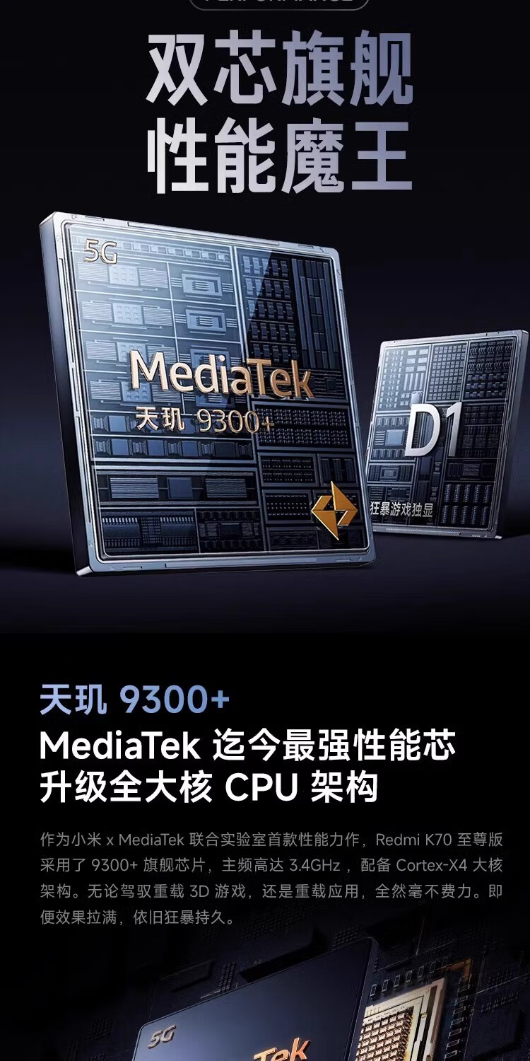 小米(MI)Redmi K70至尊版天玑9300+ 12+512 5G手机 2025新款 选购24期免息 暗影黑 12GB+512GB