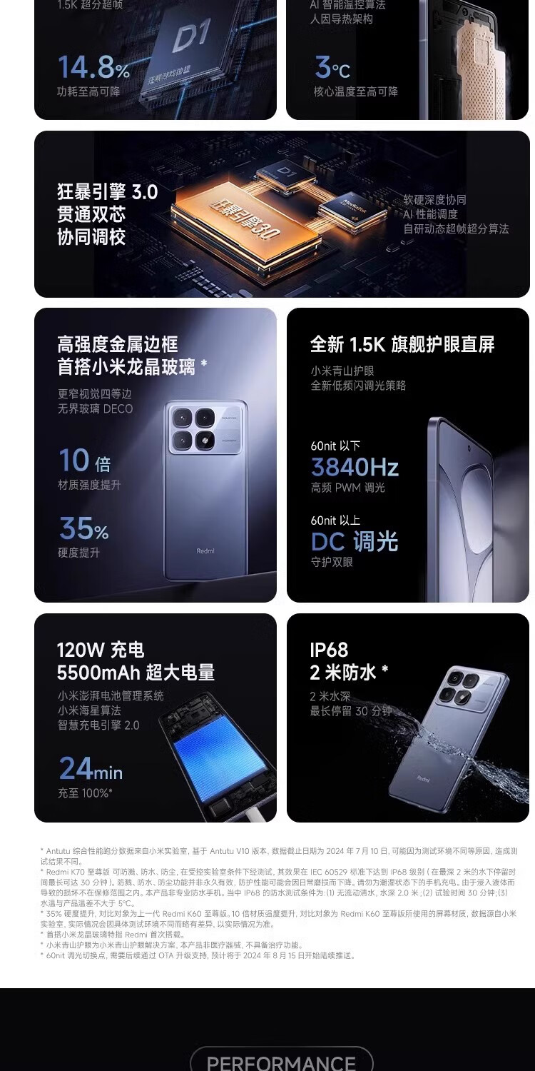 小米(MI)激 活 小米 Redmi K70 至尊版天玑9300+ 红米K70Ultra至尊拆 封 墨羽黑-激 活 12GB+512GB