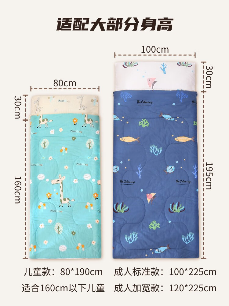 草木犀睡袋成人水洗棉秋冬厚款被子室内加厚防寒宿舍办公室午休防踢被 蓝钻大童款(80*190cm) 秋冬厚款