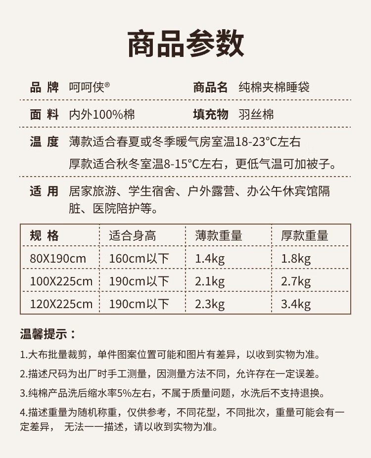 皓润琪 纯棉夹棉成人睡袋质量非常好物流很快