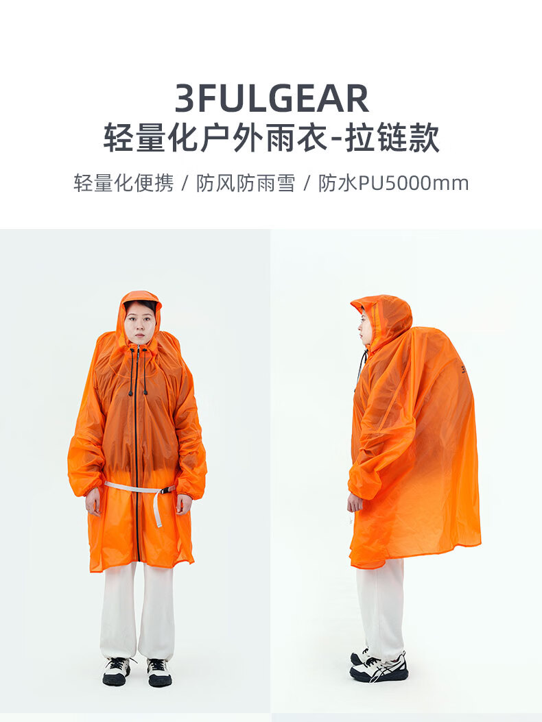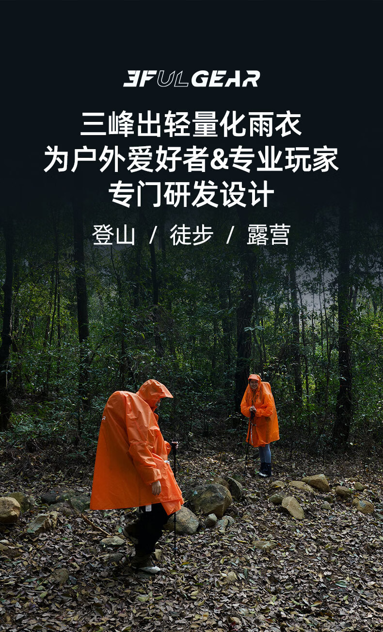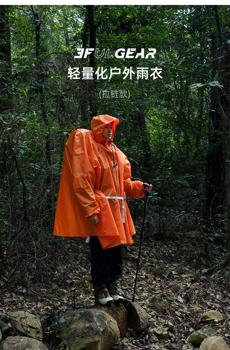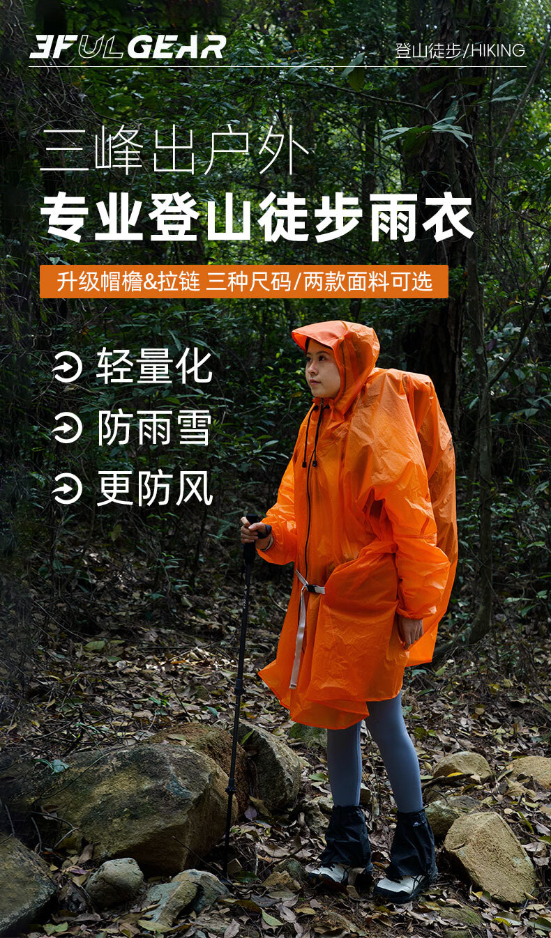 三峰出三峰雨衣户外登山徒步男女通用超轻爬山钓鱼超轻雨披多功能防雨15 2025款涤塔夫衣袖款活力橙M
